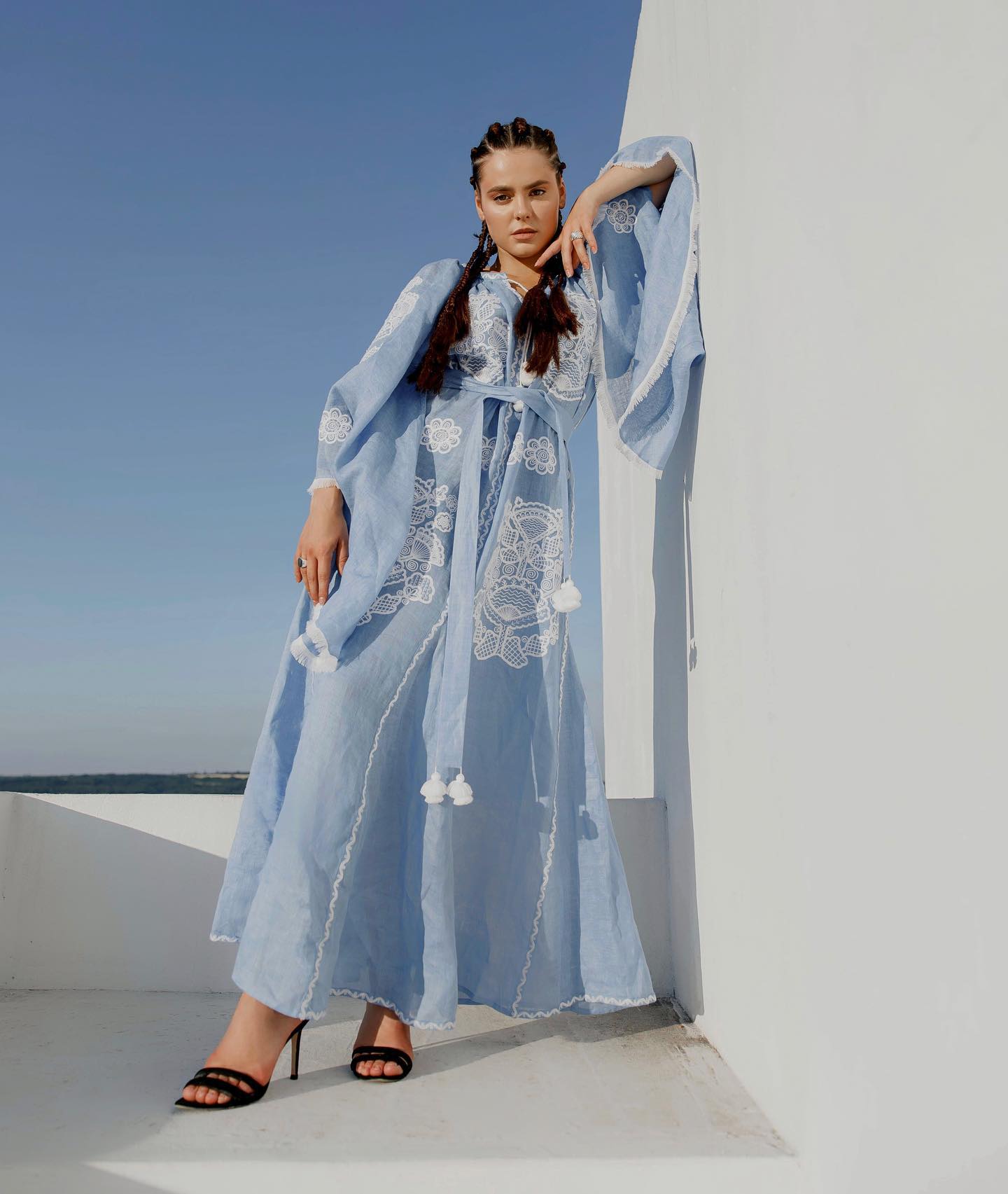 Adele Blue Dress with a collar FOBERINI