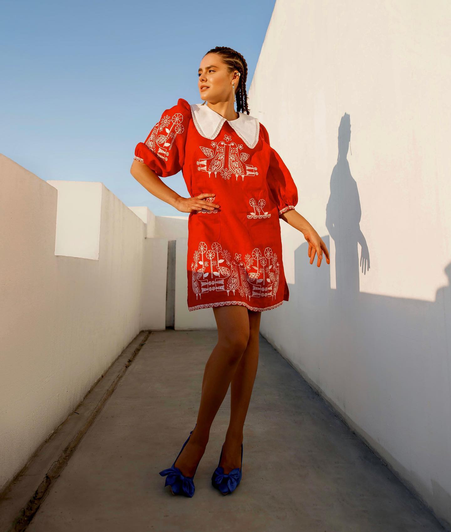 Adele Red Dress with a collar FOBERINI