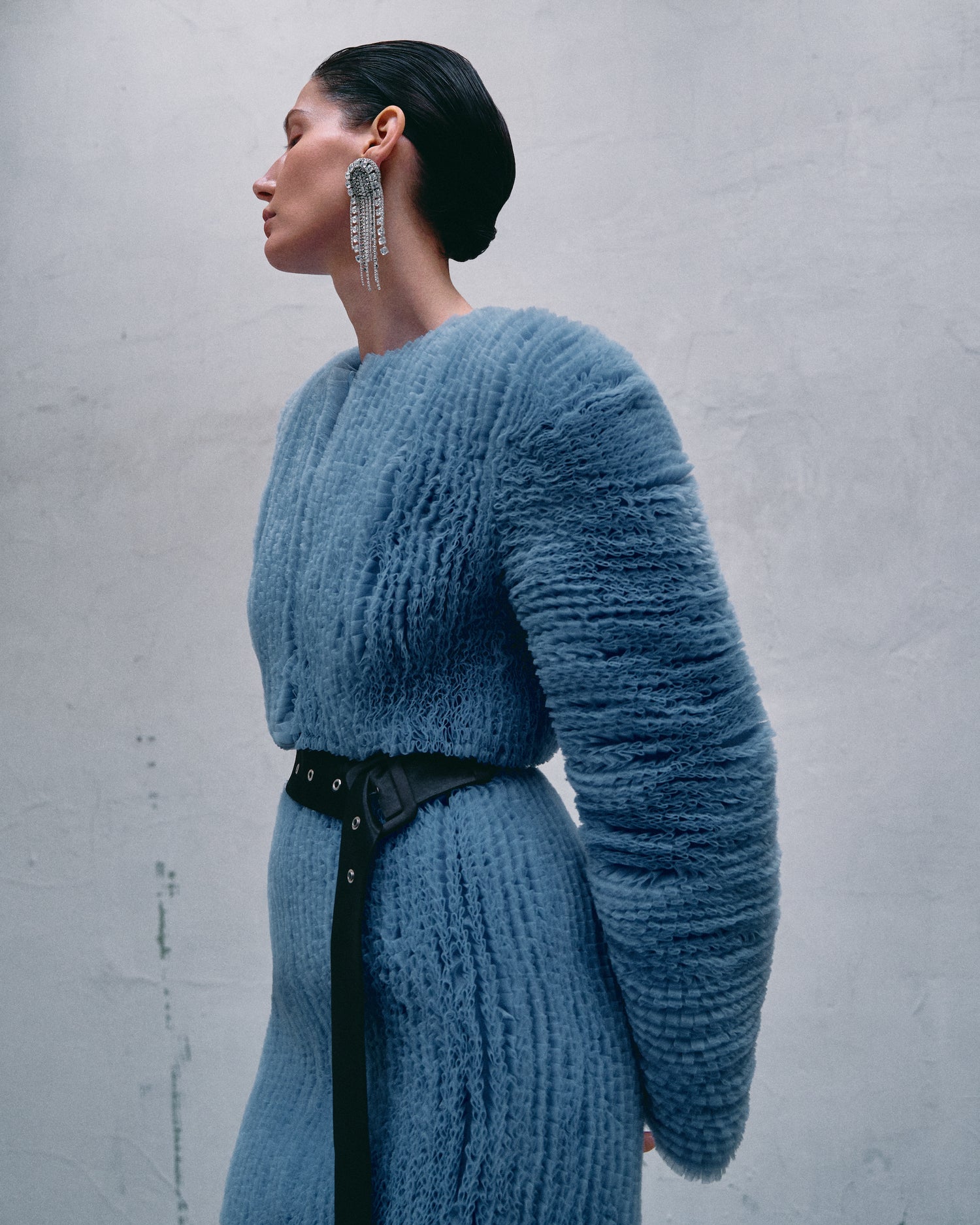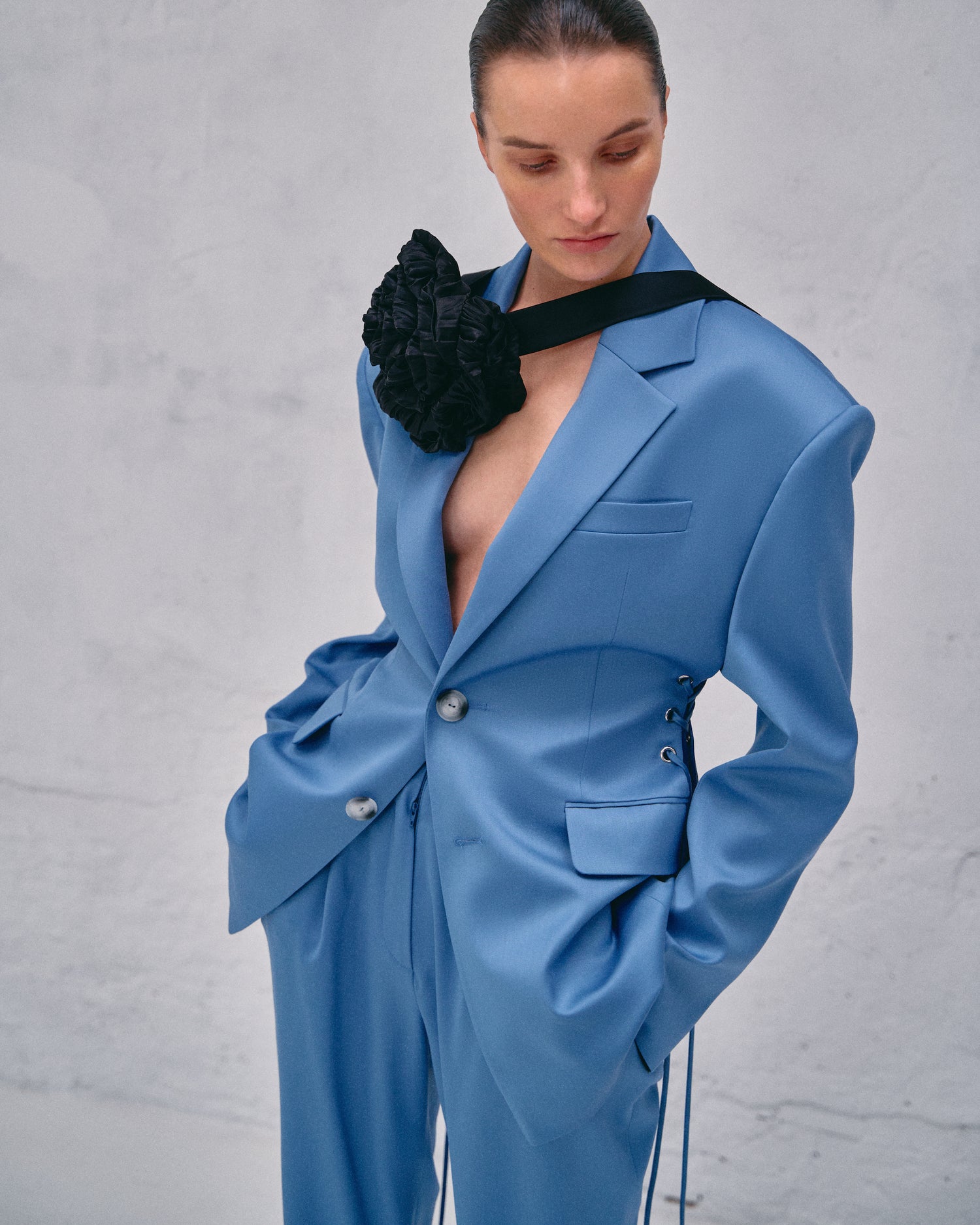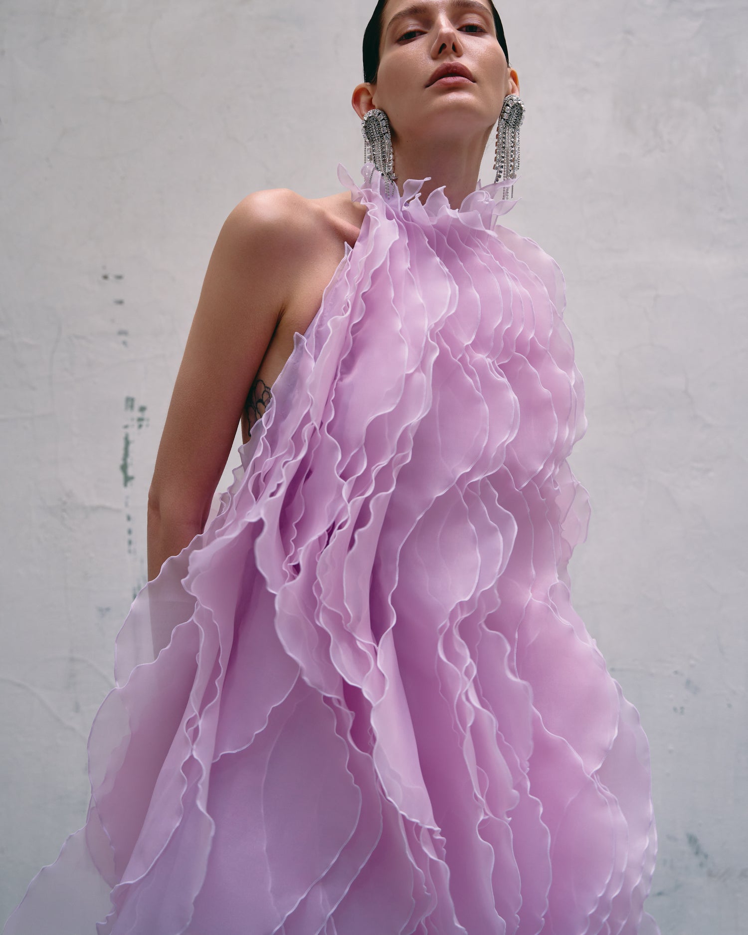 Three outstanding features of the brand are handcrafting of every single detail and pleat, architectural and hyperbolized shapes and volumes and a zero-waste direction. Unique fabrics and textures are laid in the foundation of the brand DNA, which highlights female vulnerability and power at the same time.