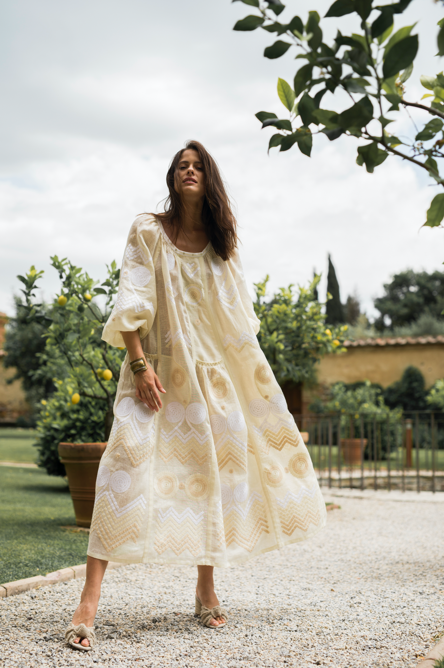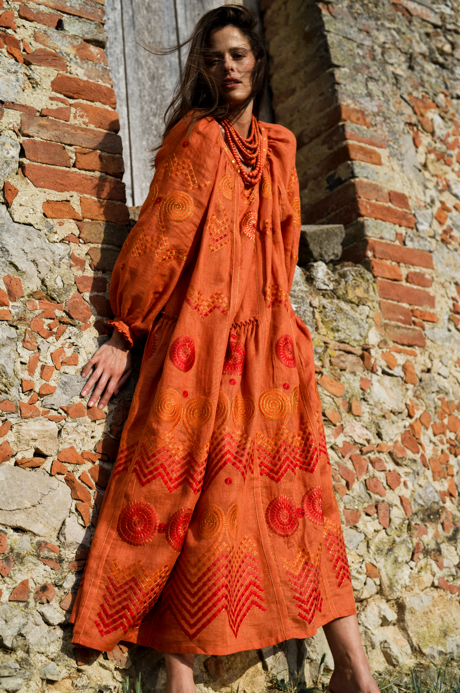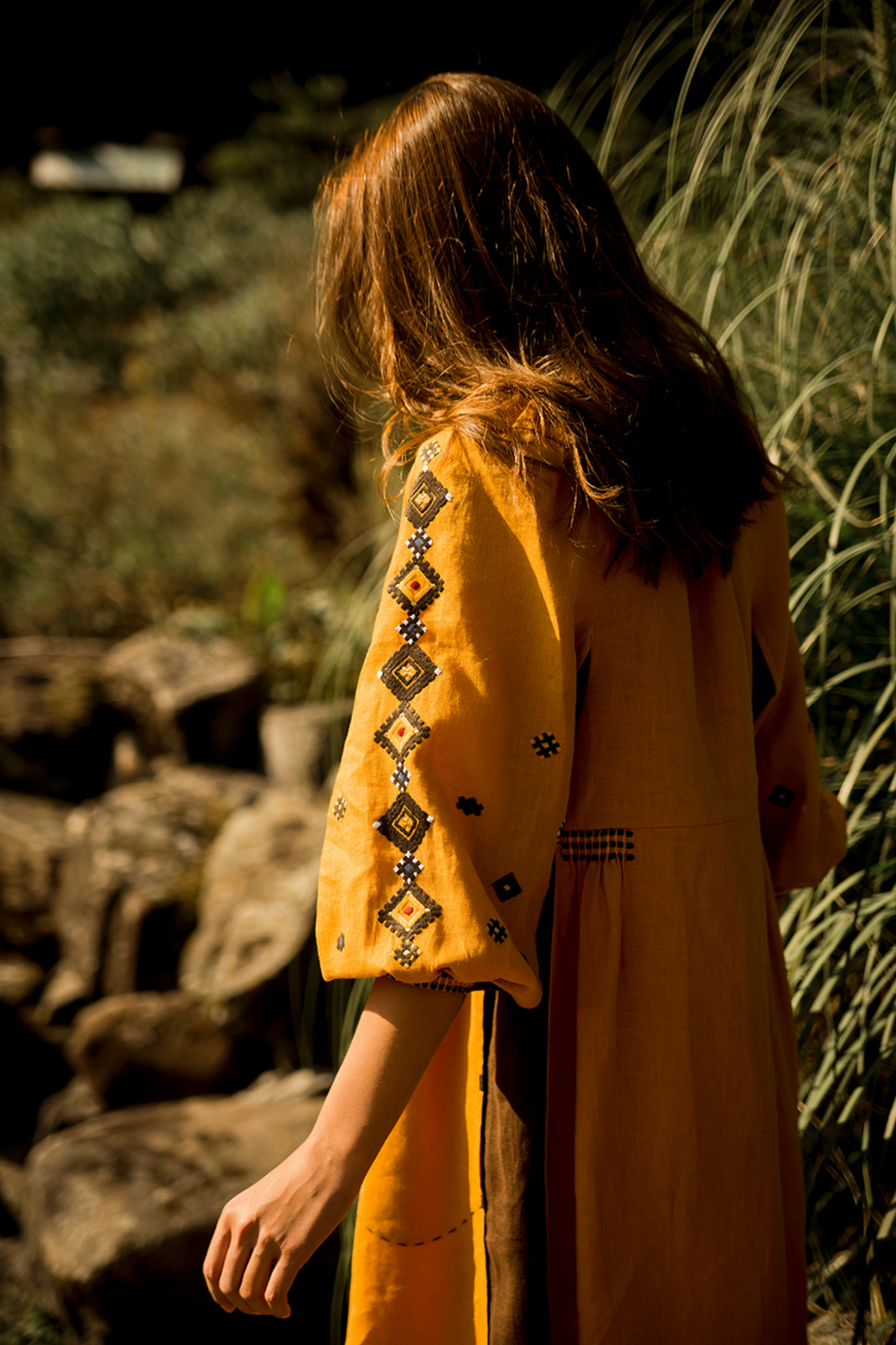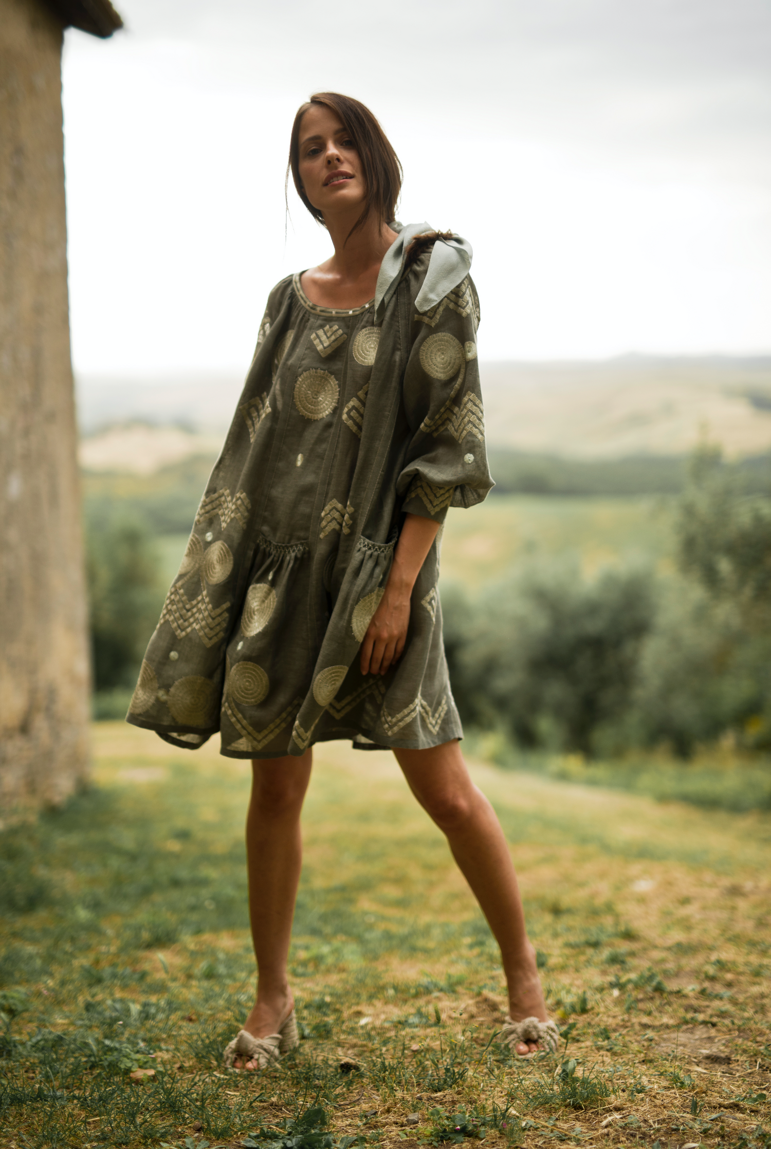 MY SLEEPING GYPSY’ garments are defined by the constant presence of voluminous patterns, various handmade construction and embellishment techniques along with ancient symbols. MY SLEEPING GYPSY creates one-of-a-kind wearable designs that feature embroidery ornaments, applique, and elements of ancient handmade sewing techniques.