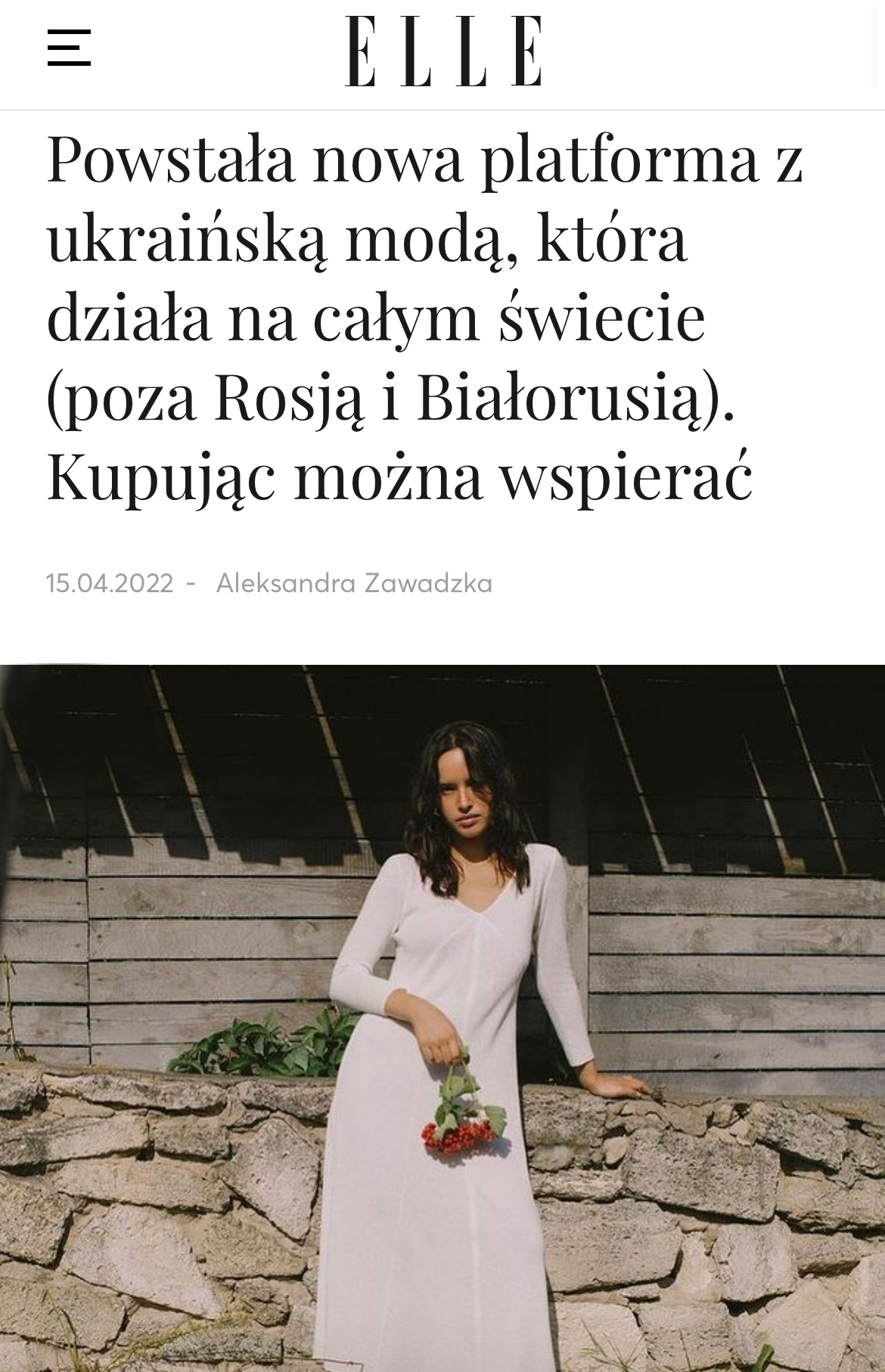 ELLE: Powstała nowa platforma z ukraińską modą, która działa na całym świecie (poza Rosją i Białorusią). Kupując można wspierać