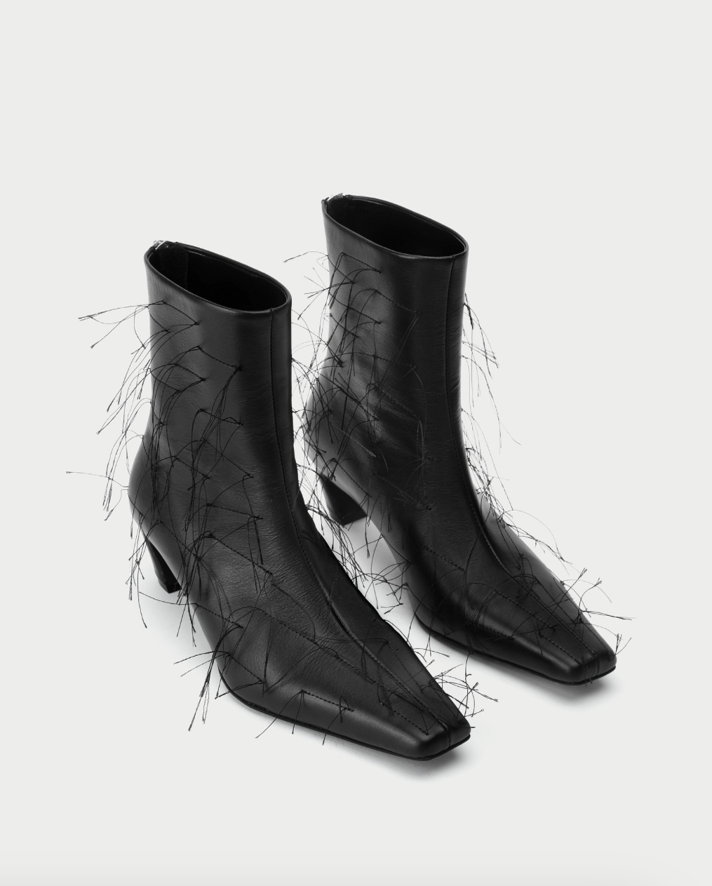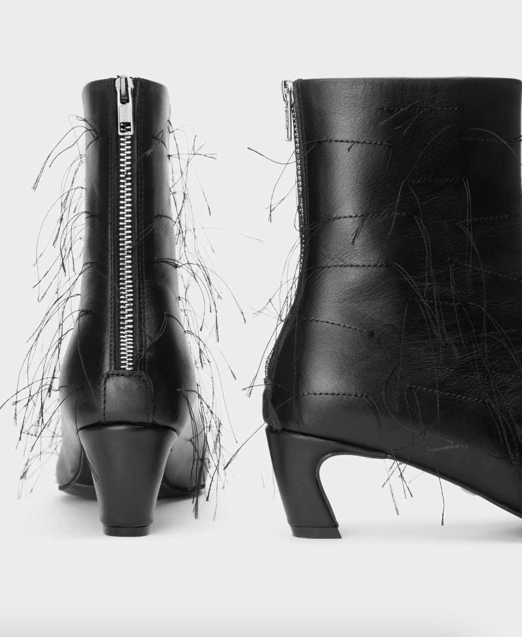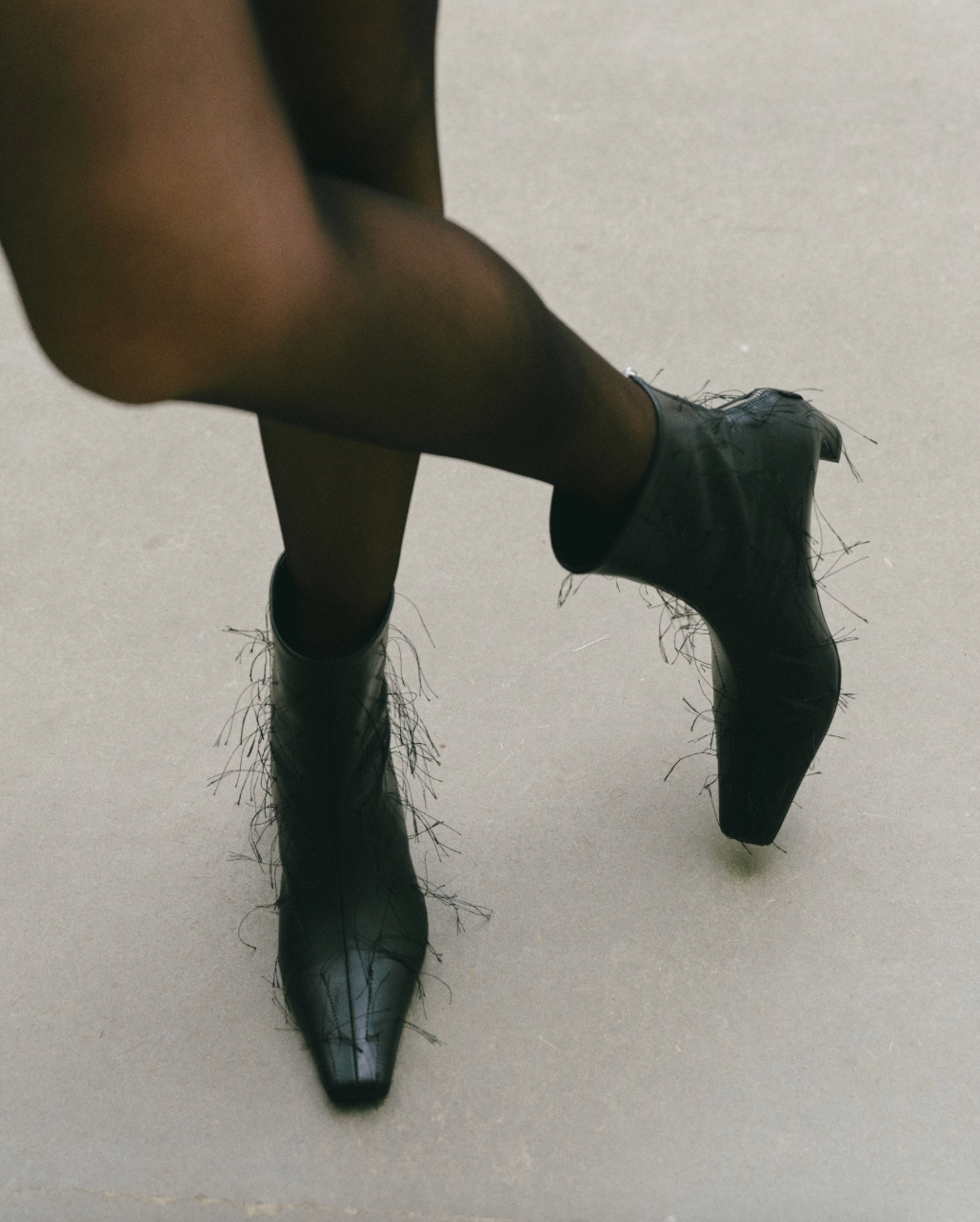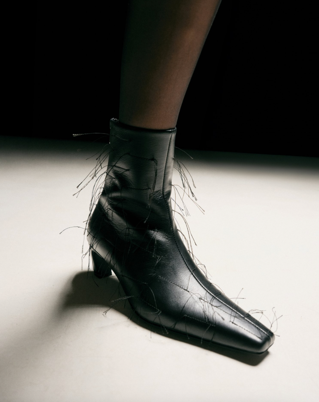The most difficult and time-consuming pair in the Dare collection.These boots have 80 additional decorative stitches with threads coming out on both sides.