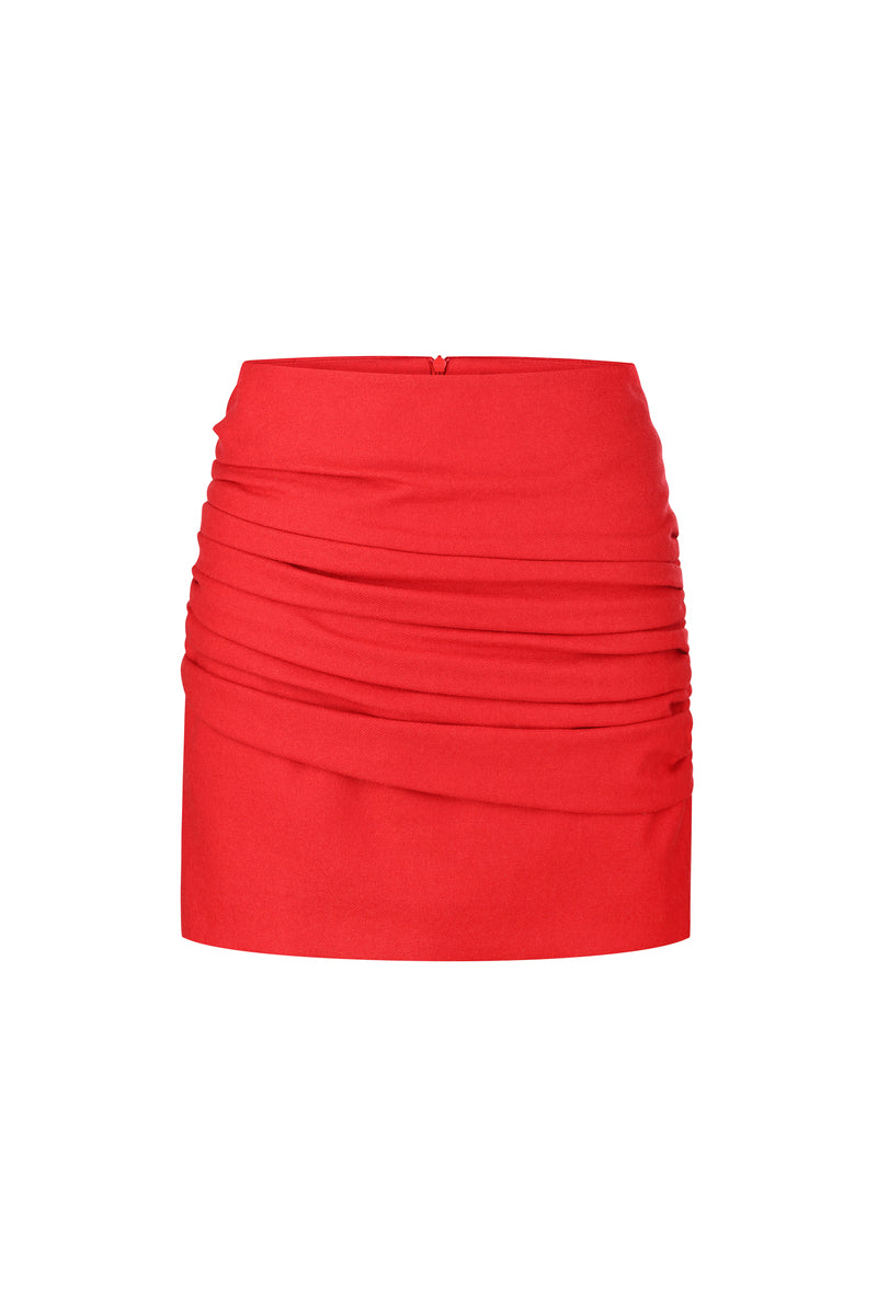 A slim-fitting mini skirt with a low-rise waist made from wool and draped asymmetrically at the front. Concealed zip fastening at the back. Fully lined with viscose.