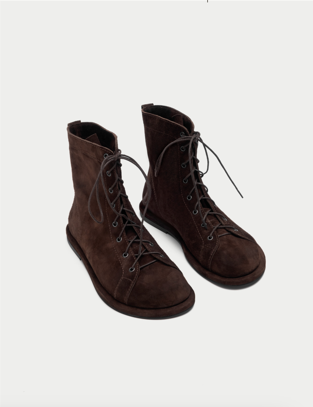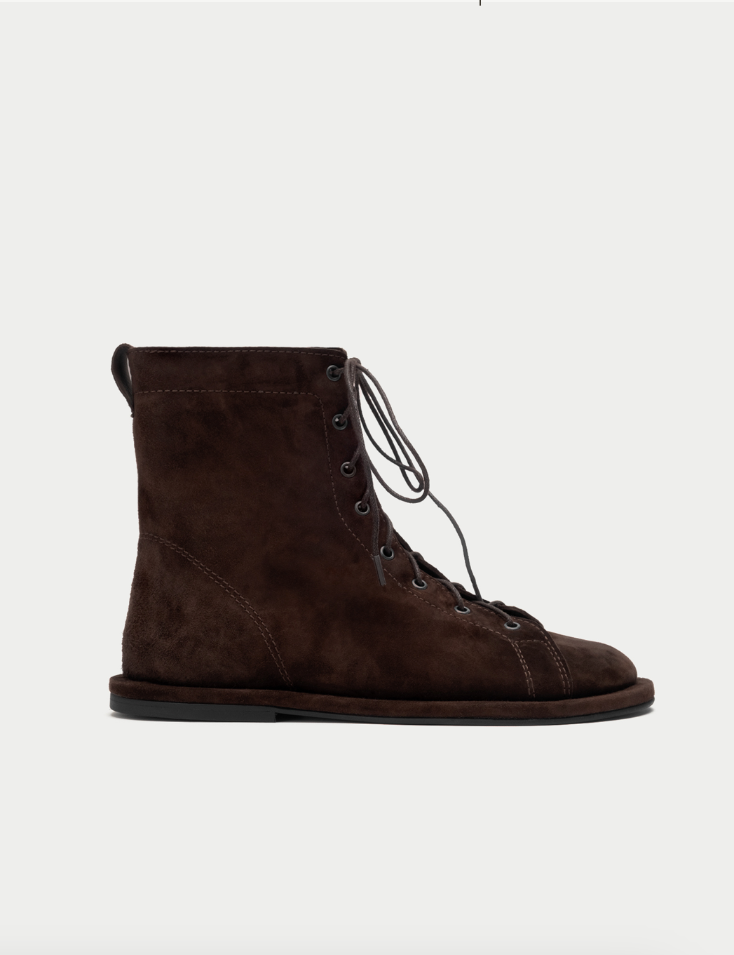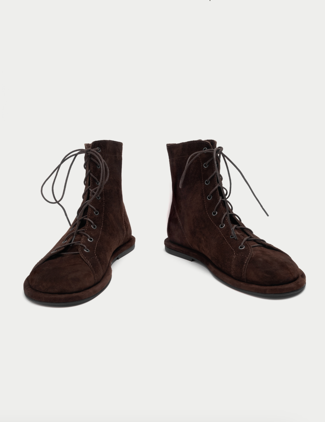 Bagel sneakers are lightweight lace-up boots that resemble sneakers. They have a wide welt part, which forms an accent contour around them. Lighthearted and romantic in mood. Match them with a voluminous trench coat, a long scarf and a cross-body bag.