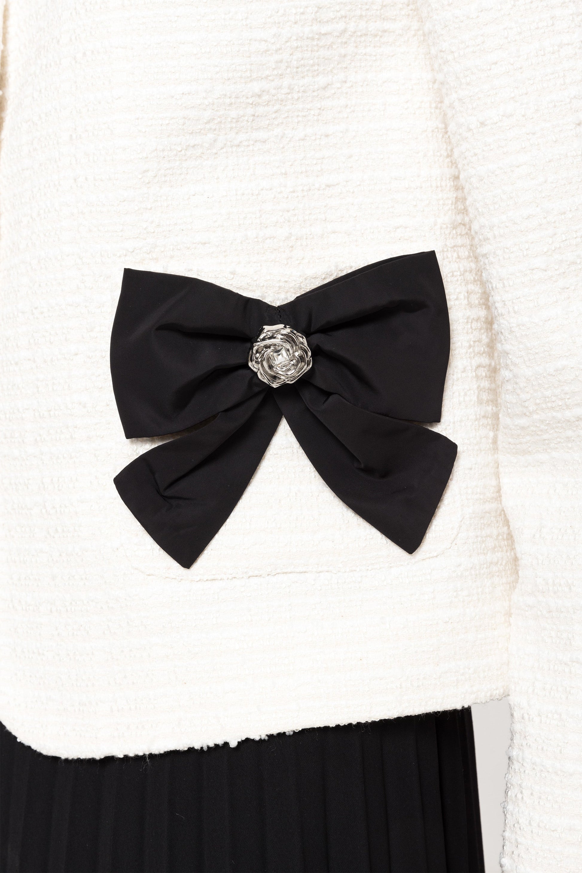 Bow-detail boucle suit jacket - J15628 white black NISSA