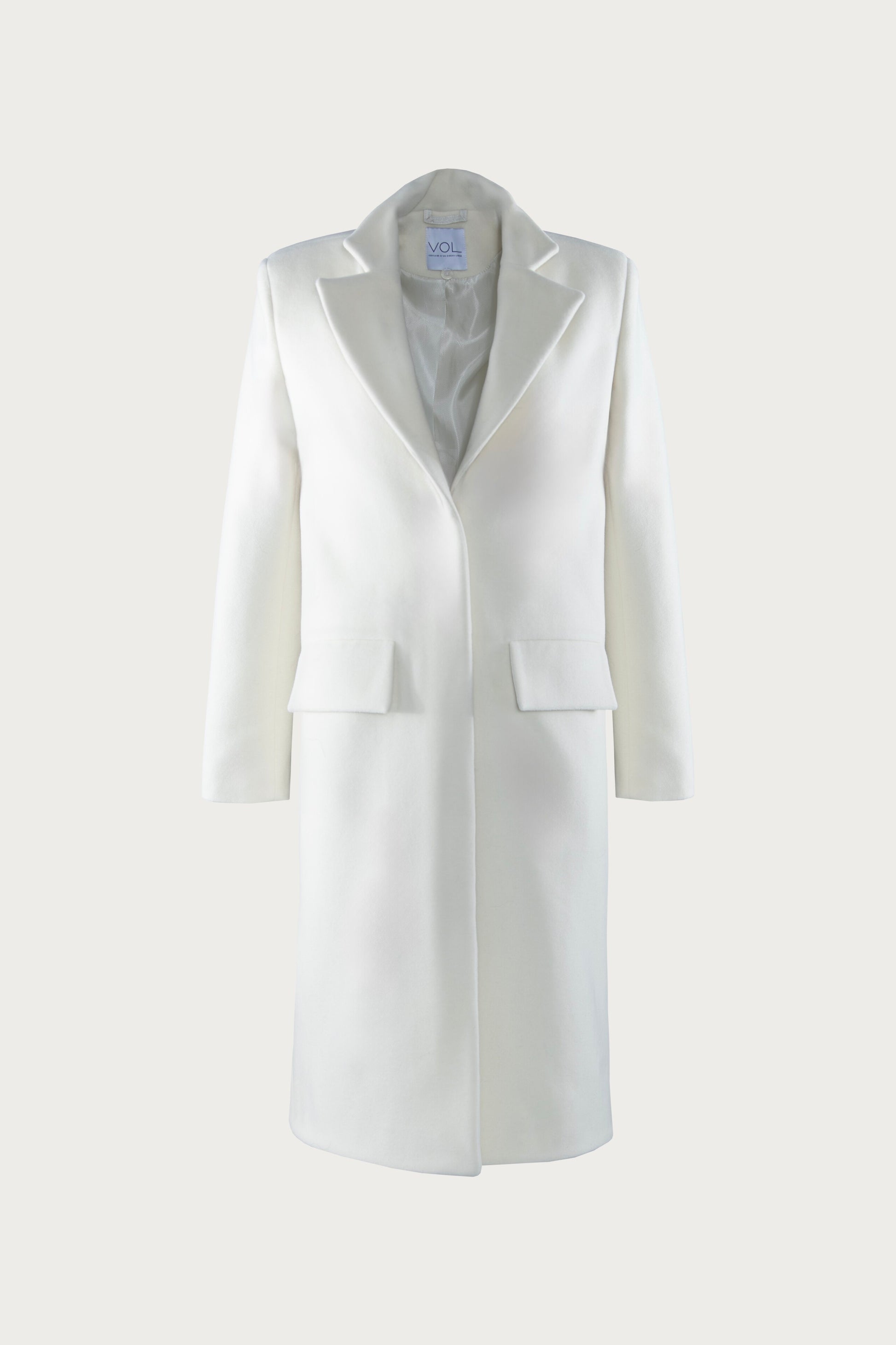 Featuring a sharp straight silhouette, this classic coat is made from cashmere fabric and is cut to a 3/4 length. With a concealed snap closure, it combines versatility with style.