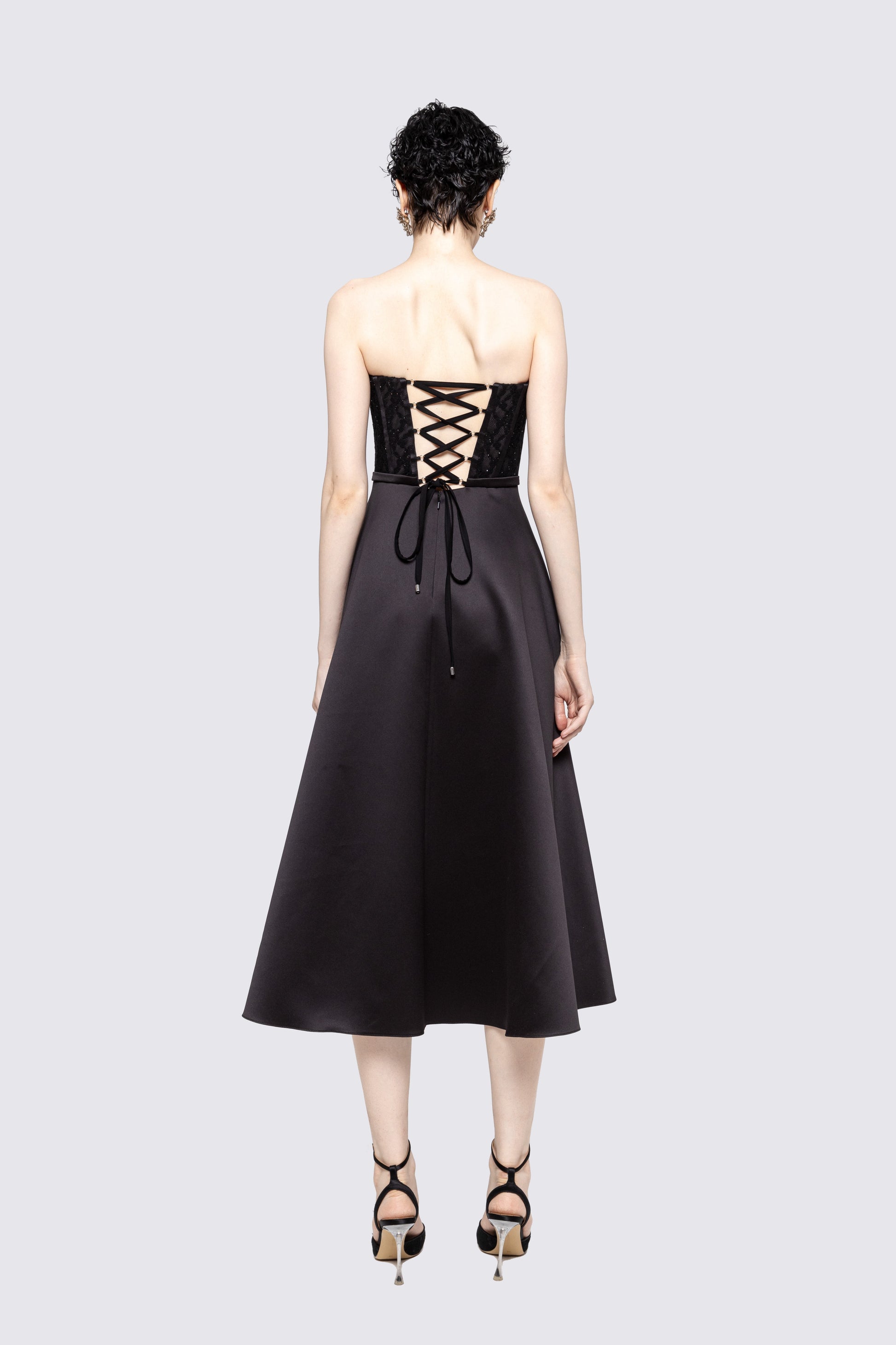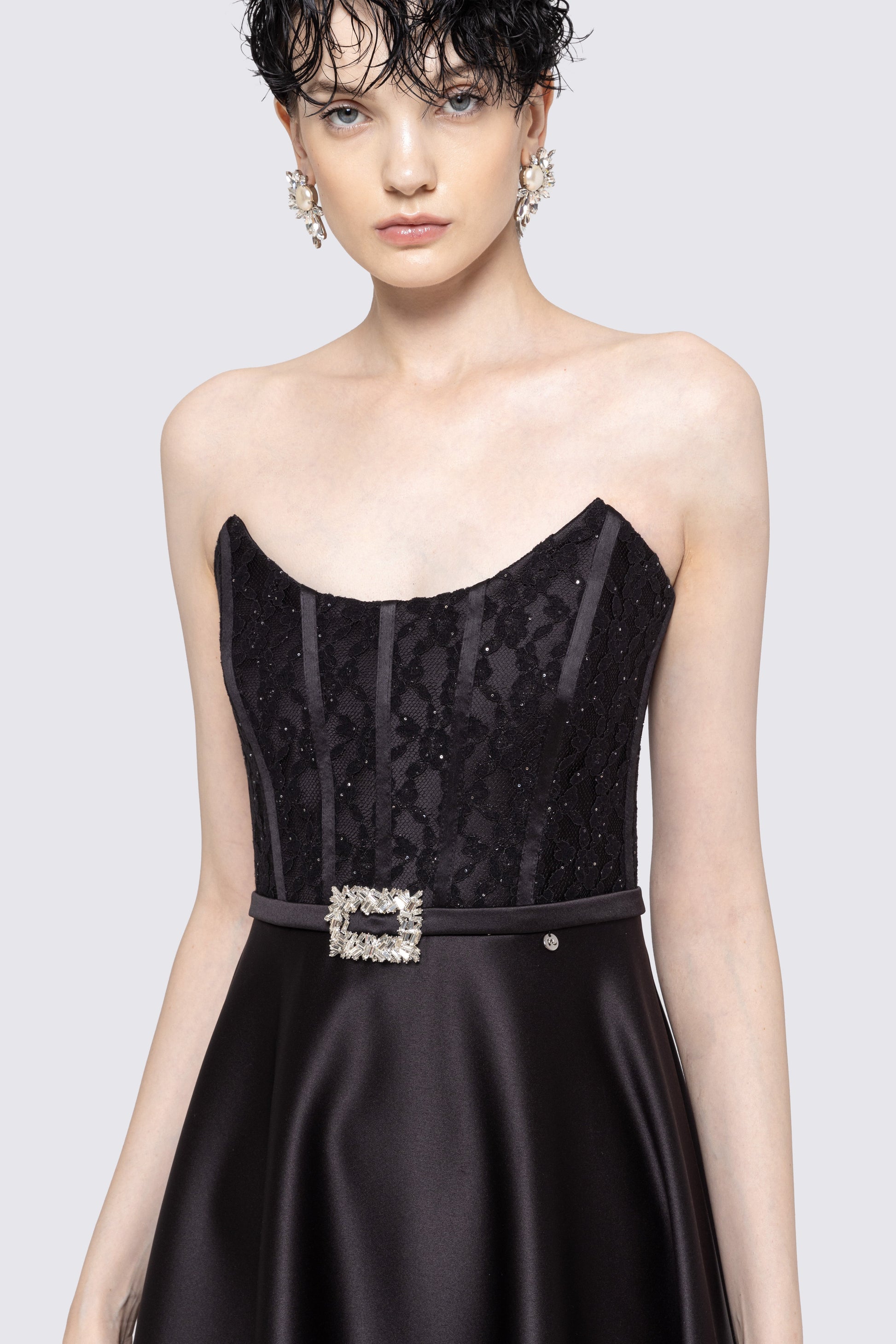 Corset-style strapless taffeta dress NISSA