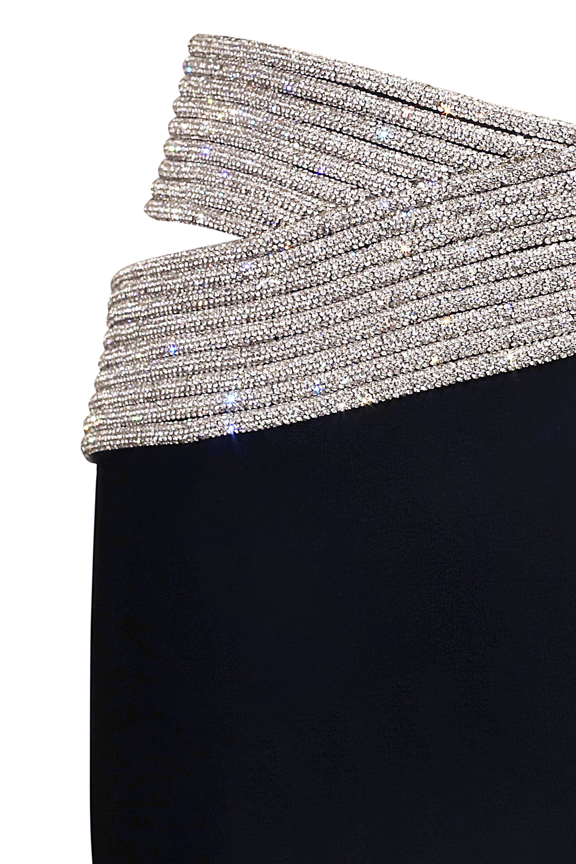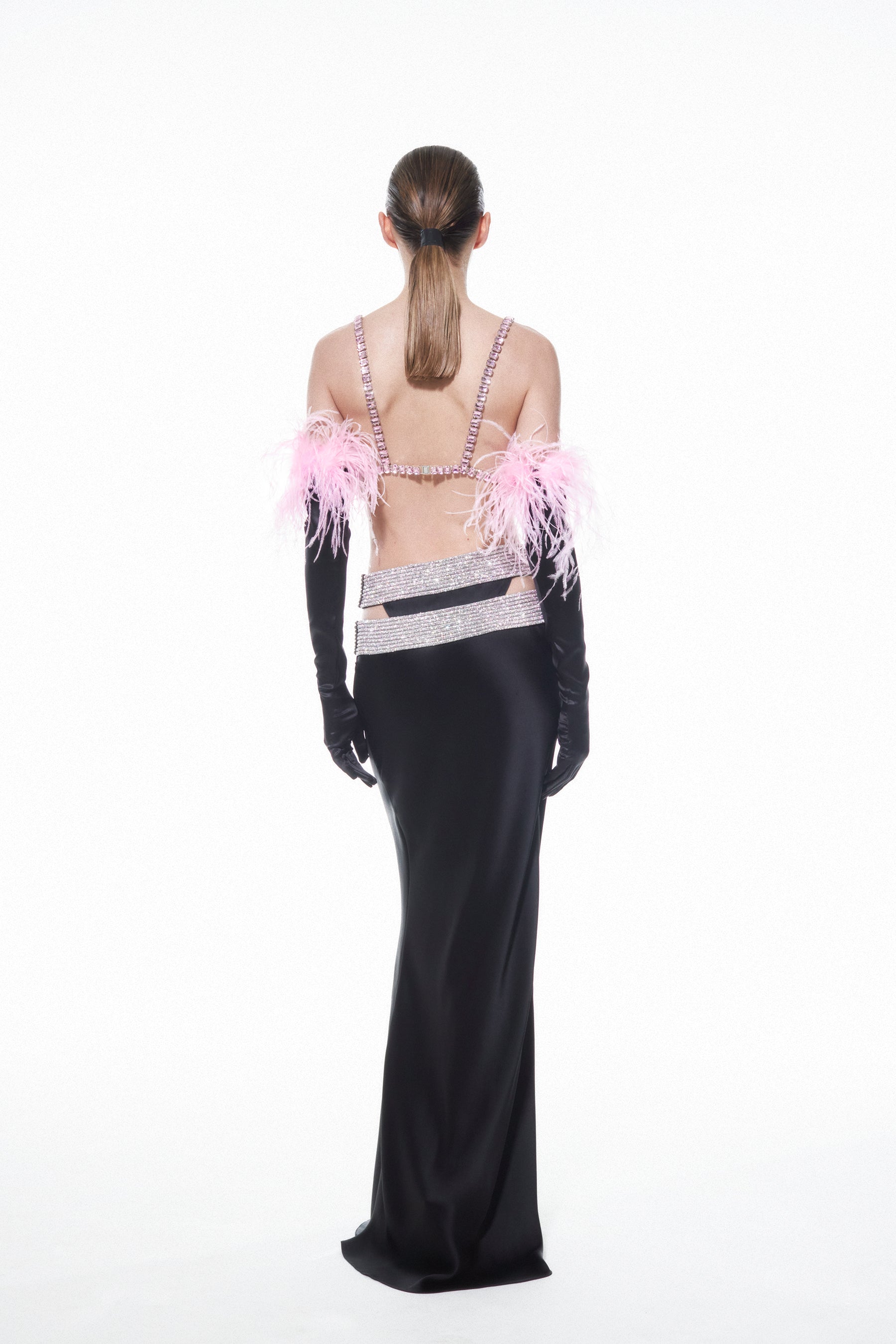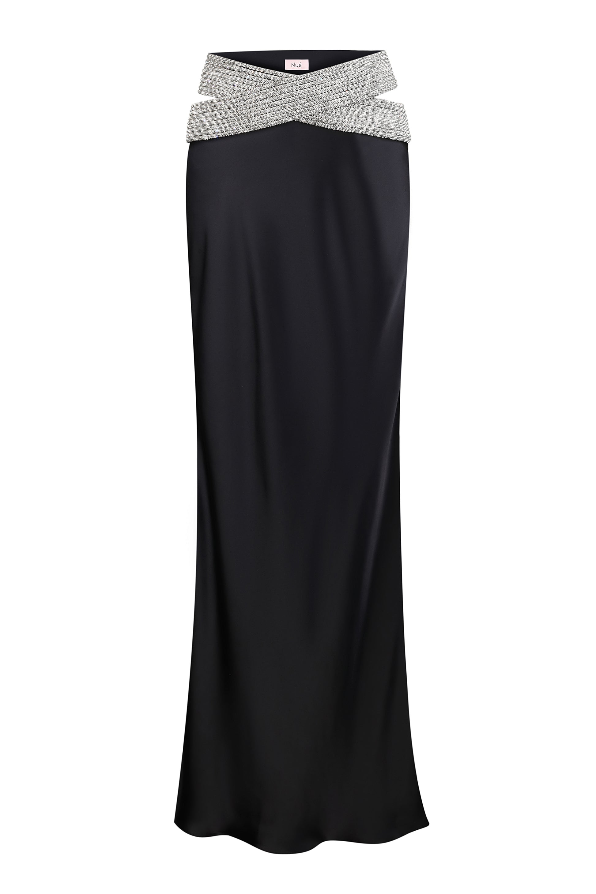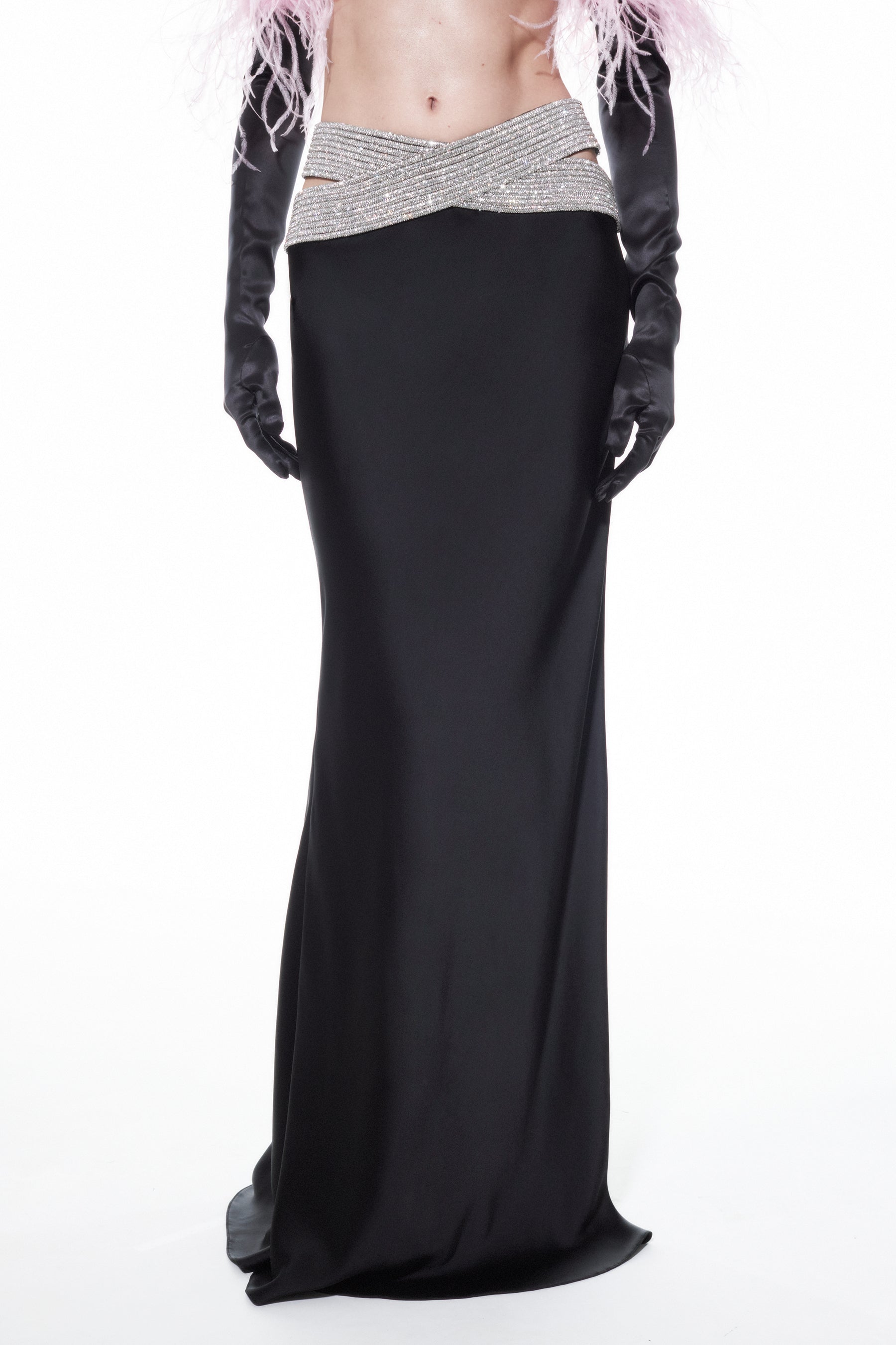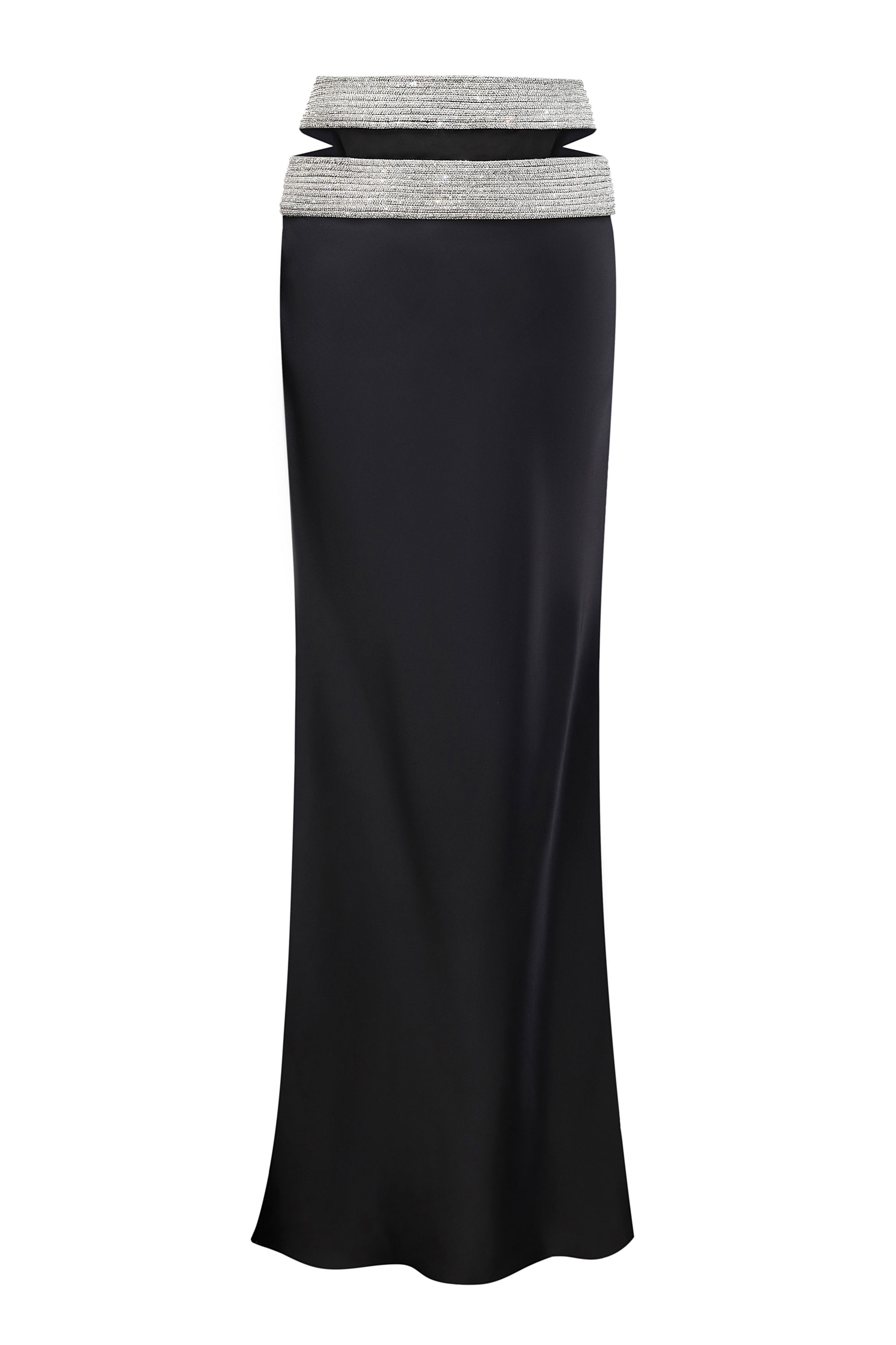 A maxi skirt cut from lustrous heavy fluid viscose cady with signature Eternity embellishment on the top. It sits on the low waist with side cuts revealing the body and gently skims the body falling to a floor-sweeping hem. Concealed zip closure and hook-and-eyes on the side.