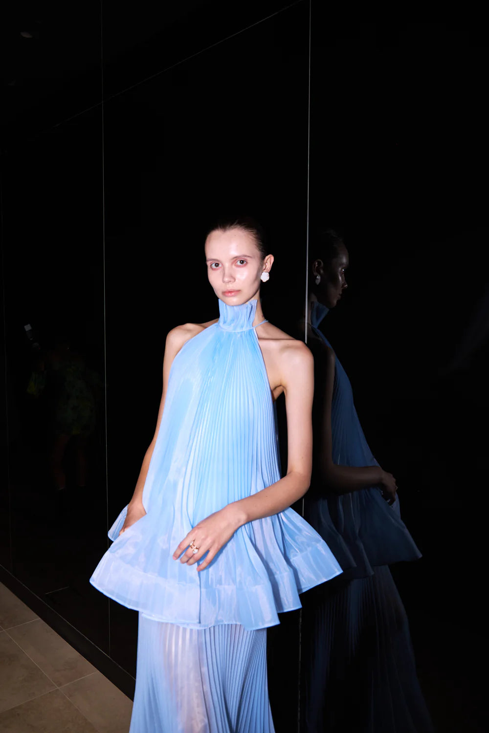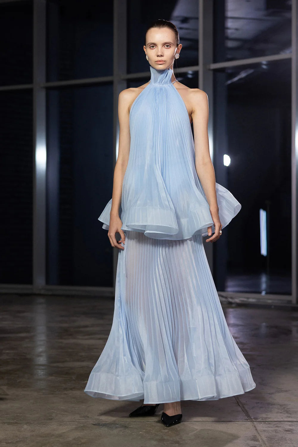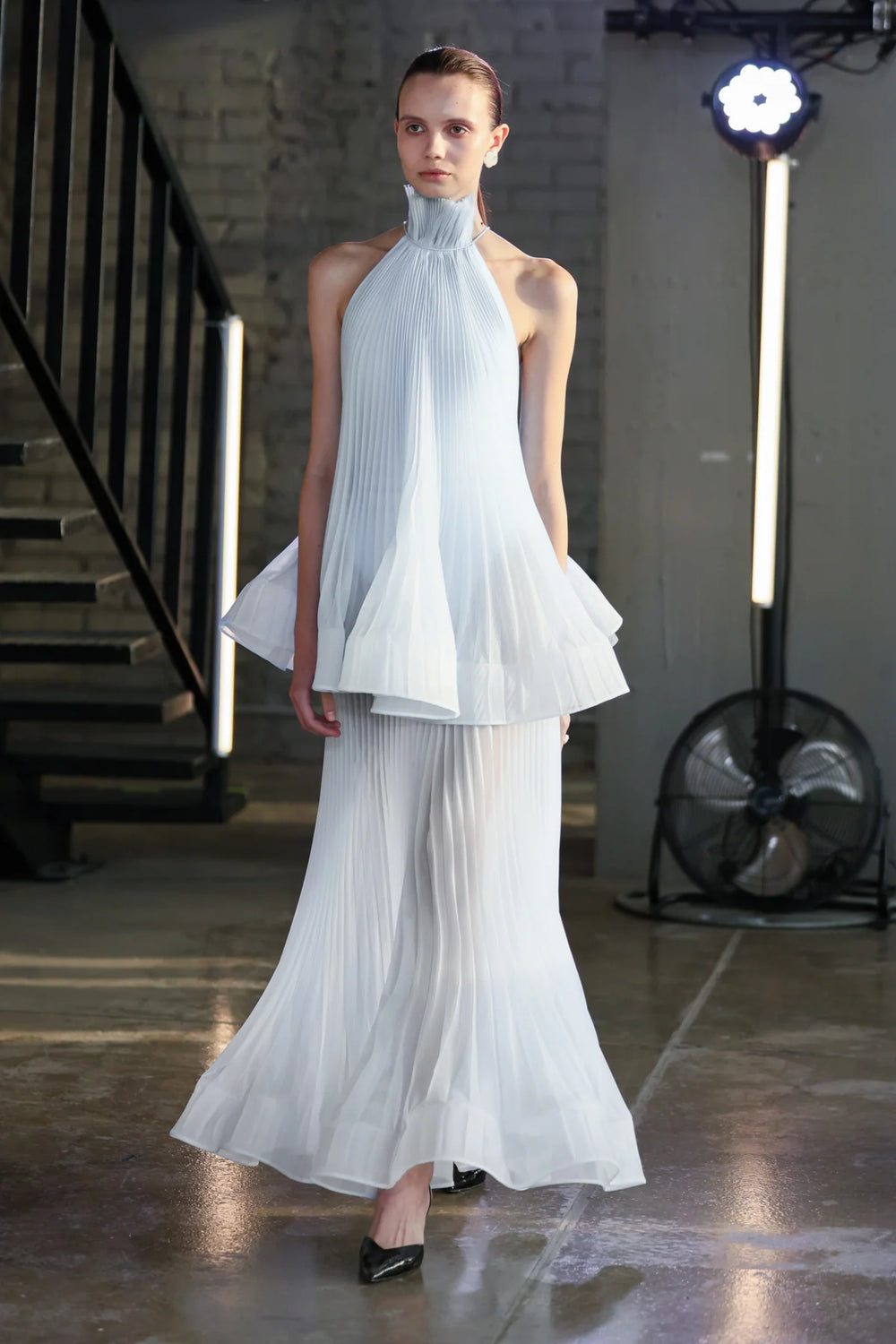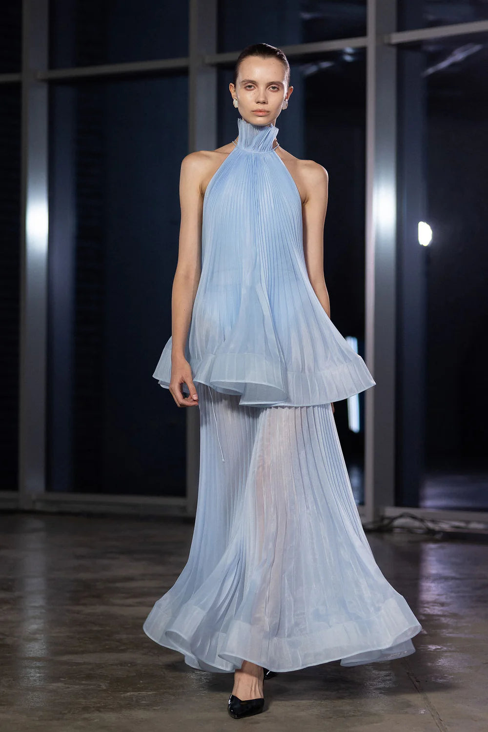 The EVELYN pleated set combines timeless elegance with contemporary style. This top and skirt set features handmade pleated fabric that creates a beautifully textured look, adding sophistication to any wardrobe. Made from a blend of 80% polyester and 20% viscose, the set offers both comfort and durability. The true to size fit ensures a flattering silhouette, making this set a perfect choice for various occasions.
