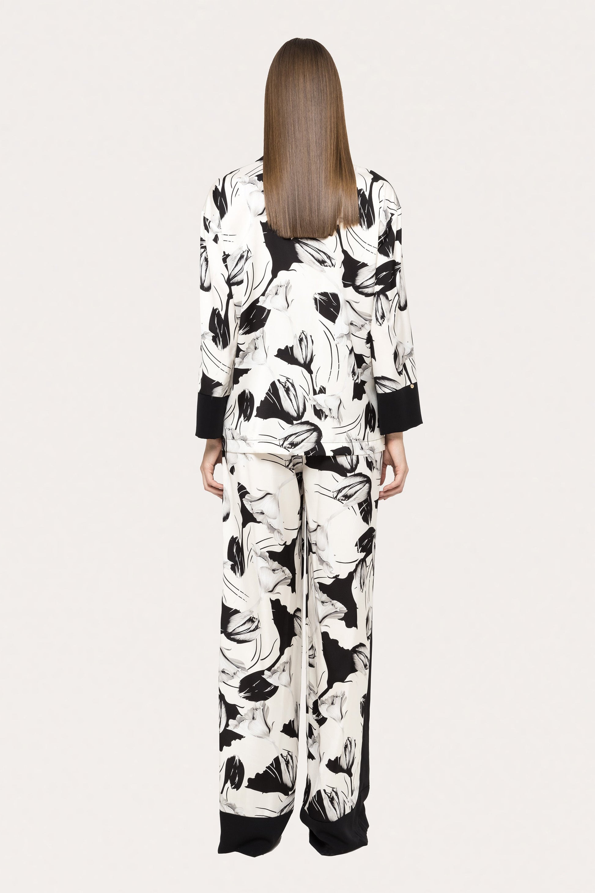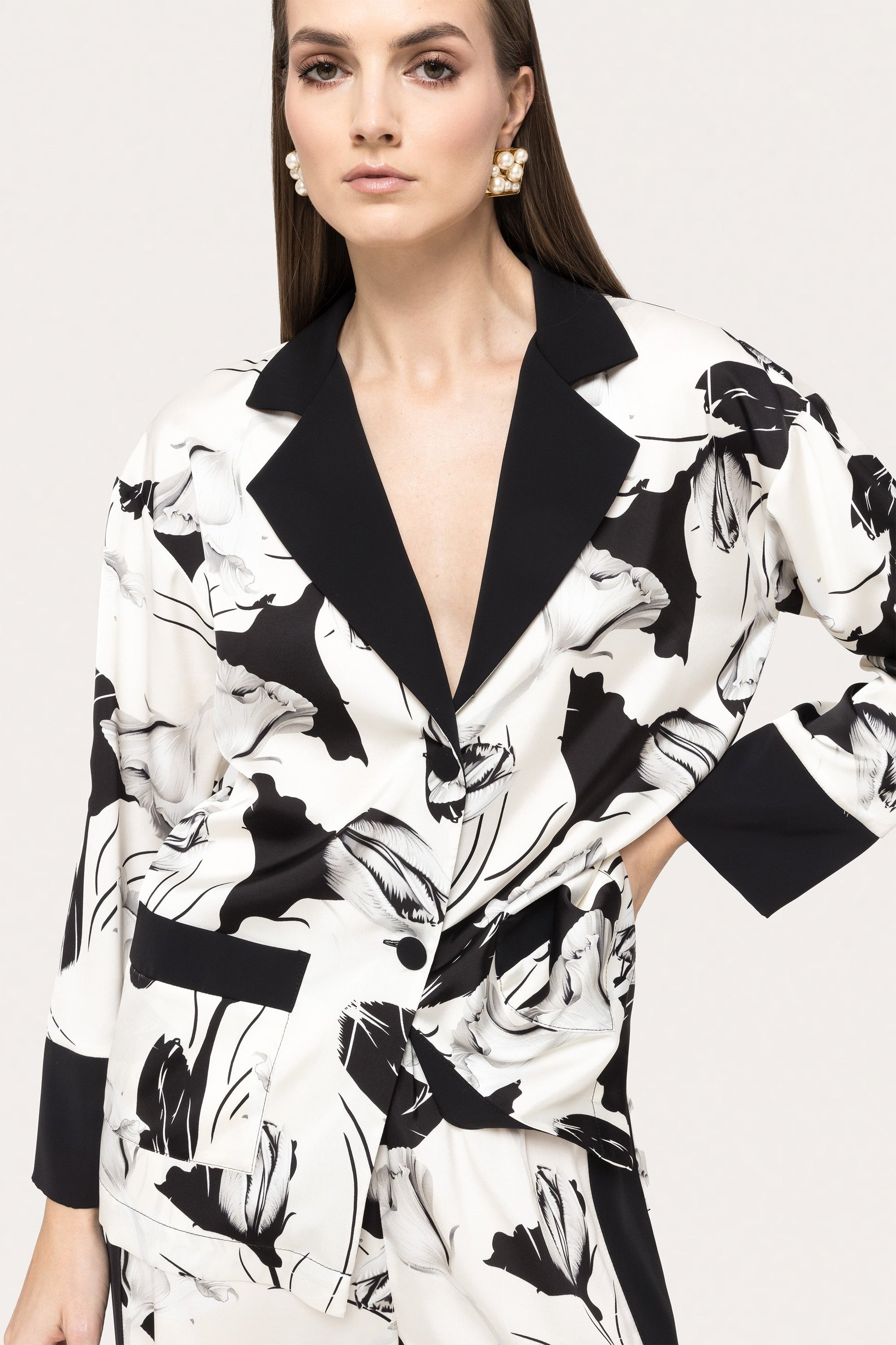 Chic and comfortable, this satin shirt features a beautiful floral print and a relaxed fit. Ideal for daytime wear or casual events, it adds effortless elegance to your wardrobe.