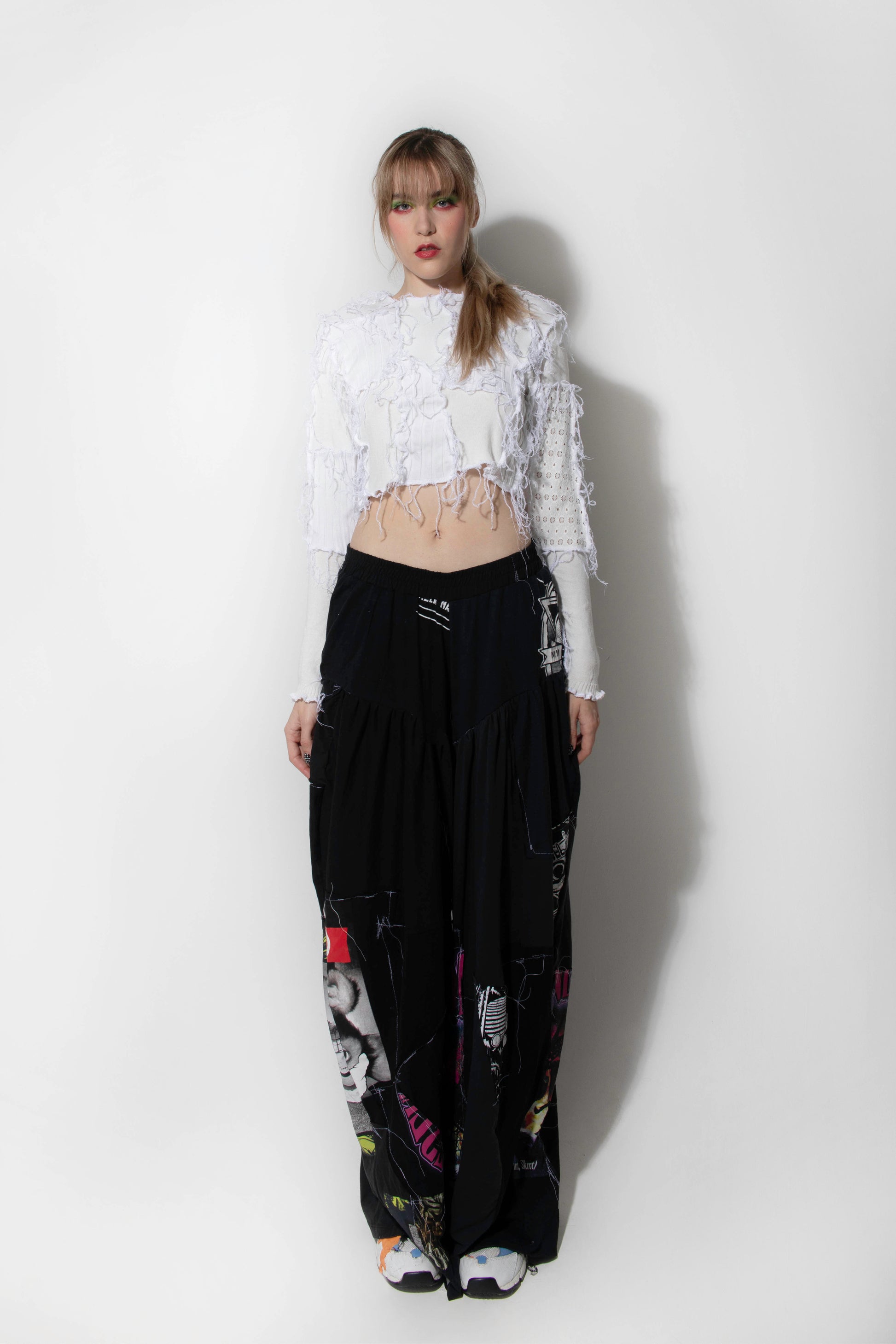 The Fluff Sweatshirt is a one-of-a-kind piece. Featuring a blend of Multi White tones, this long-sleeve top is elevated by textured contrasting overlocker stitches and a playful lettuce hem. With its dynamic design and eye-catching details, it brings a bold statement to any wardrobe.