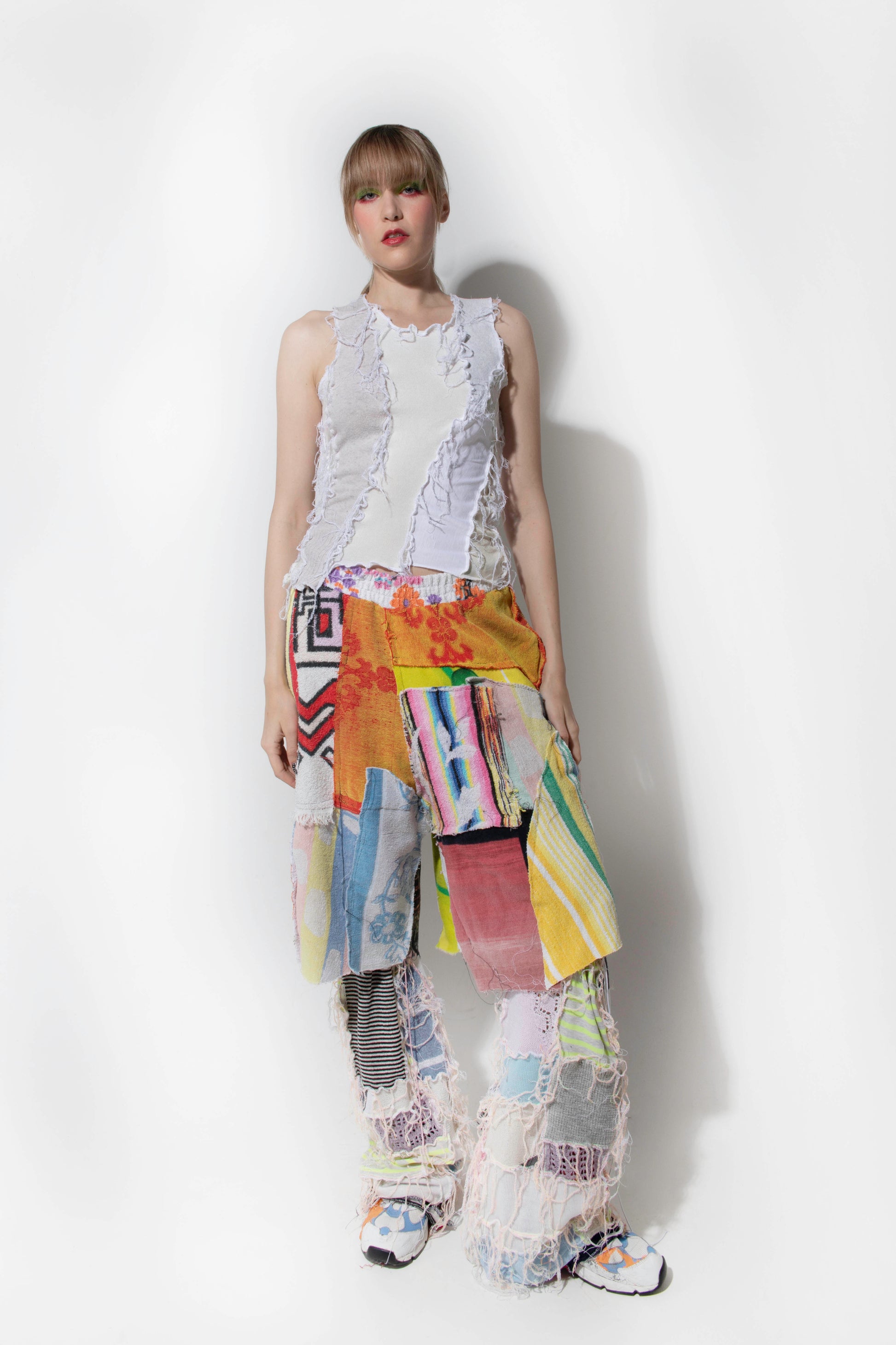 The Fluff Tank Top is a one-of-a-kind piece. Featuring a blend of multi-white tones, this tank top is elevated by textured contrasting overlocker stitches and a playful lettuce hem. With its dynamic design and eye-catching details, it makes a bold statement in any wardrobe.