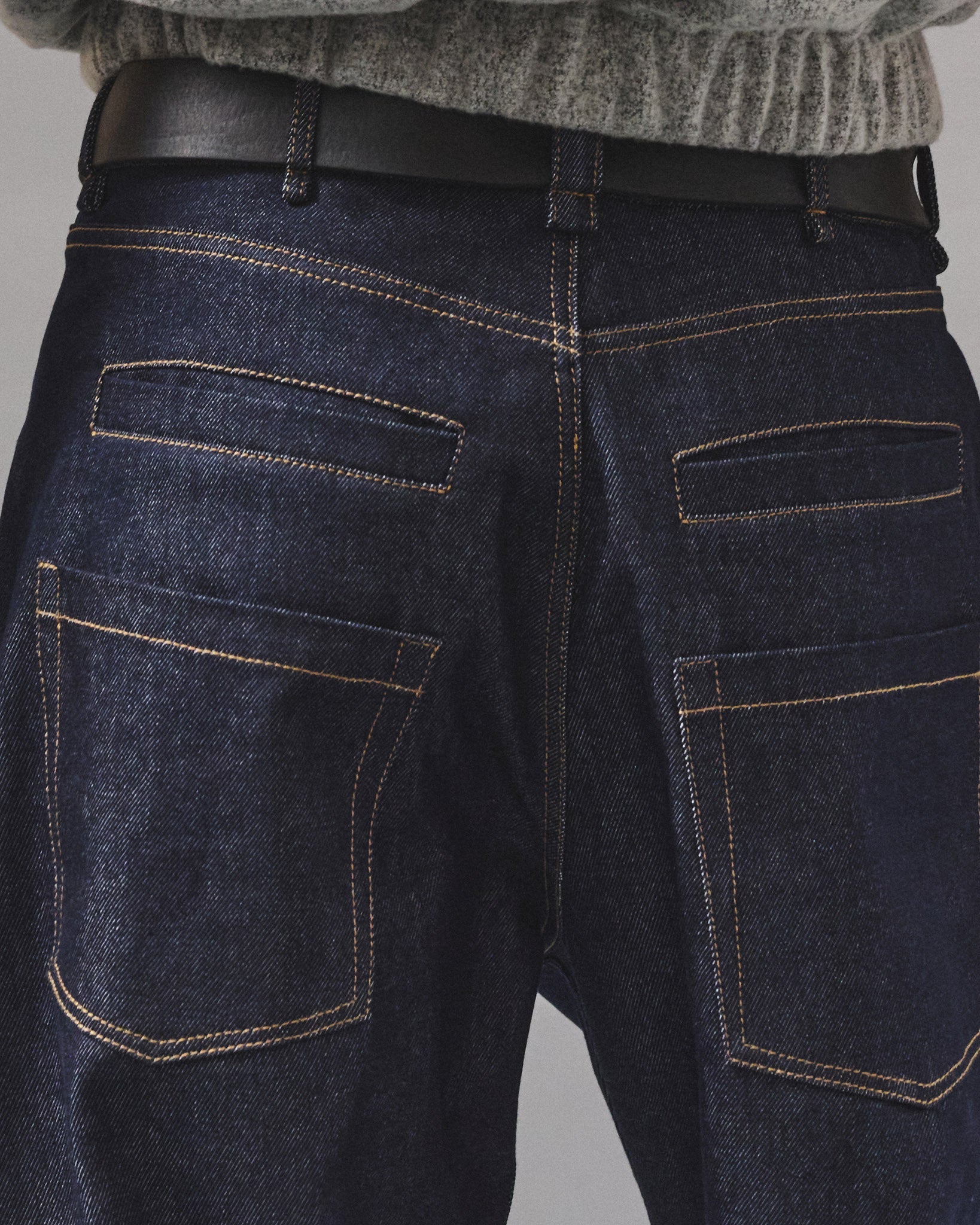 The Foundation Jeans redefine classic denim with an emphasis on architectural volume and enduring quality. They are crafted from premium raw heavy denim, a fabric with rigid structure and its capacity to develop a unique patina over time. This foundational piece provides a commanding drape and a clean, decisive silhouette, serving as a versatile canvas for individual expression.