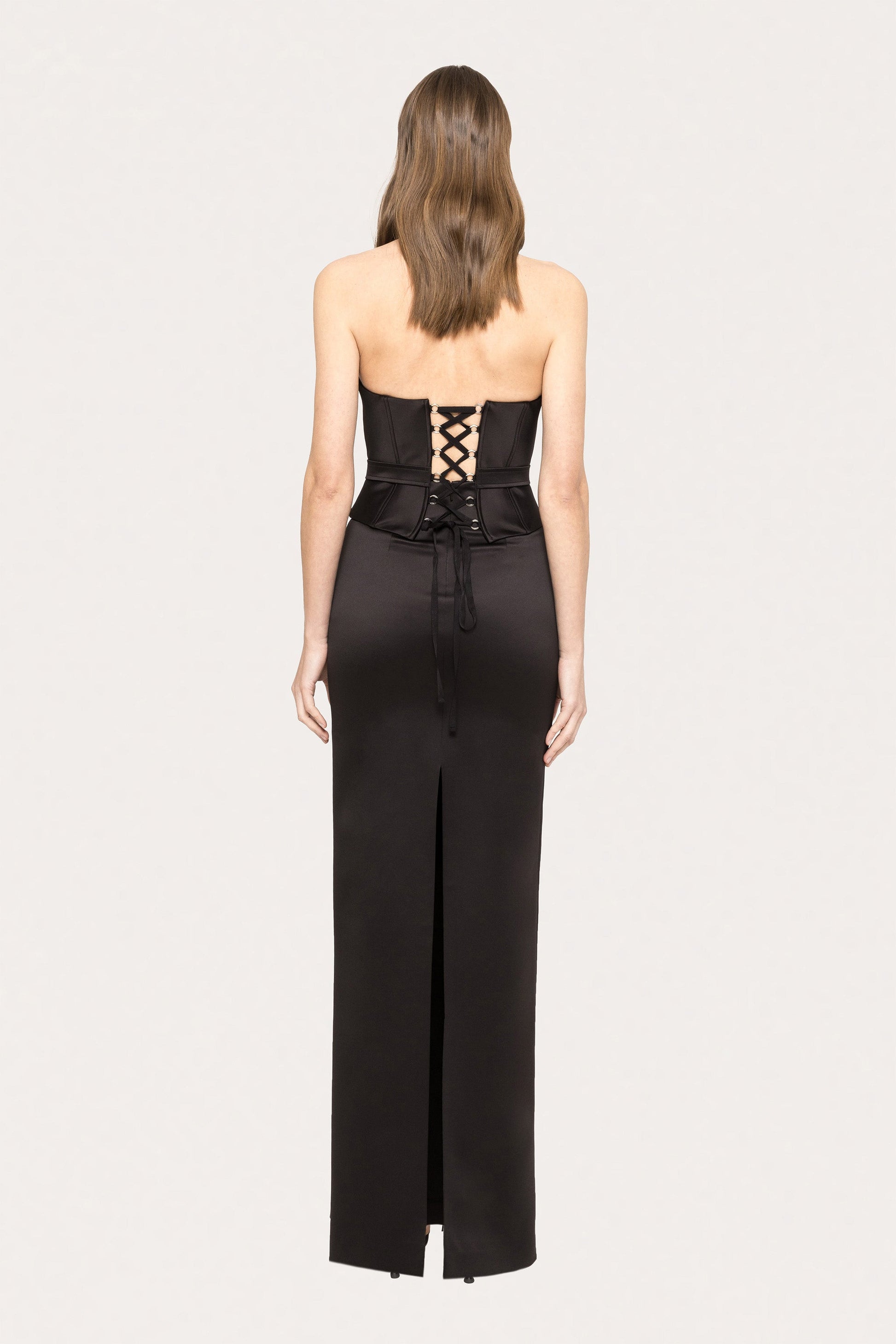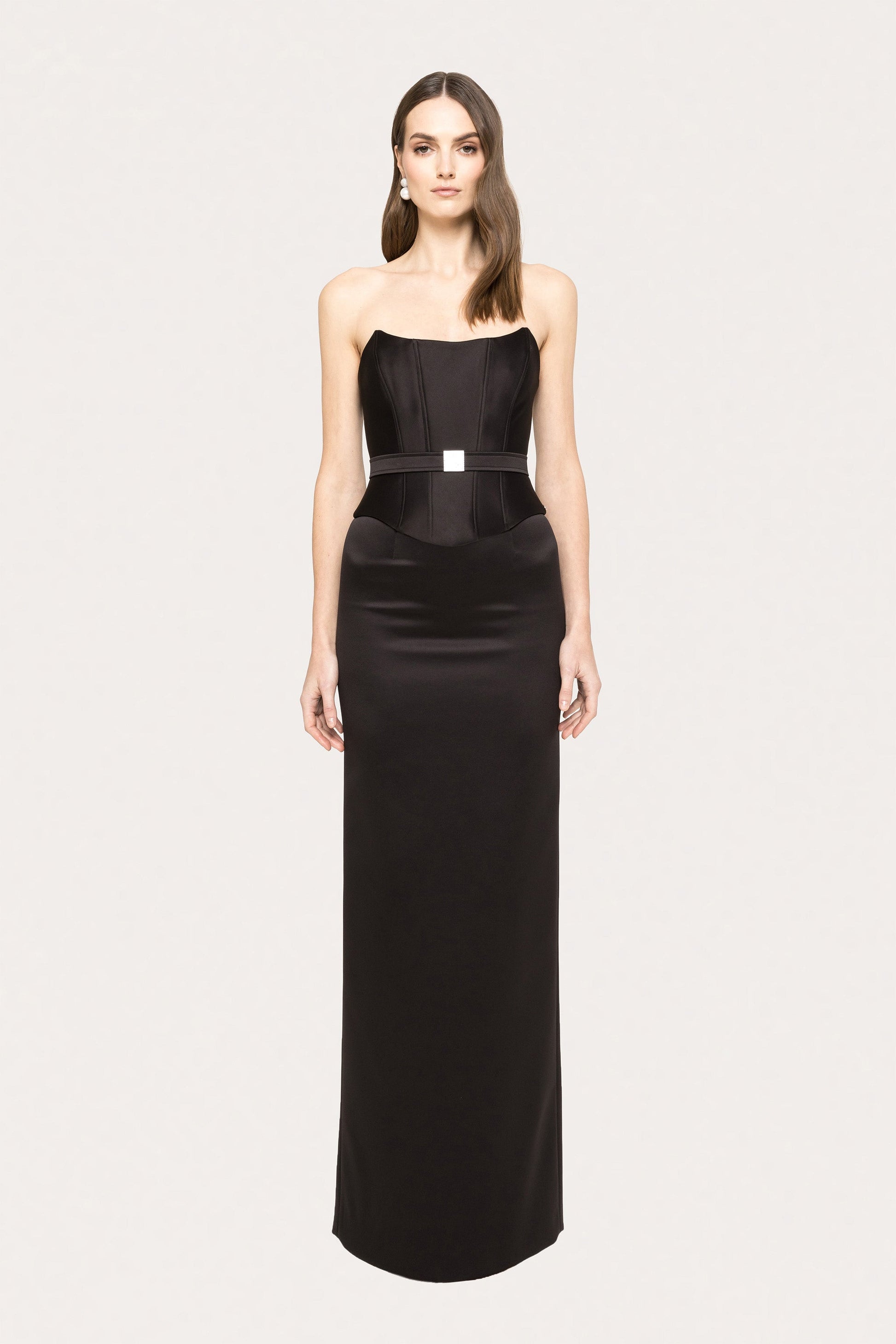 Refined and classic, this long taffeta skirt features a tailored silhouette, perfect for office or formal events.