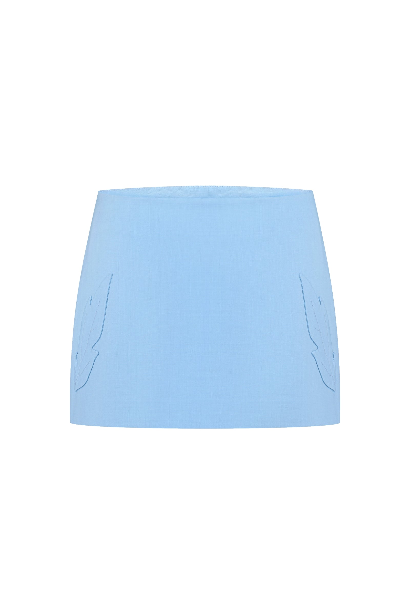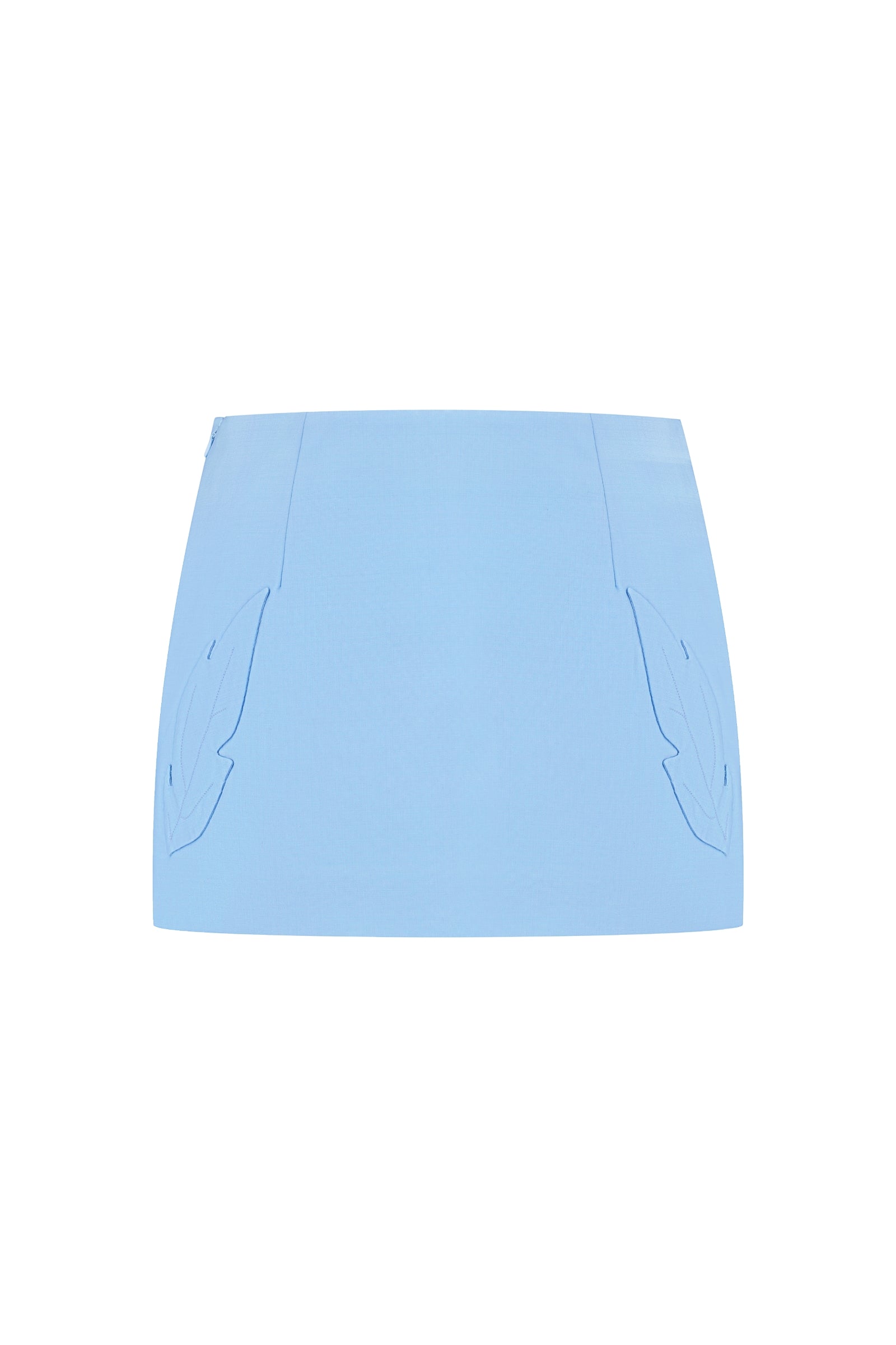 The Merezhyvo Mini Skirt Blue PODYH is a mini low-rise straight skirt designed with modern style and comfort in mind. Featuring a side zipper and decorative elements along the sides, this skirt is a chic addition to any wardrobe, perfect for both casual and evening wear.