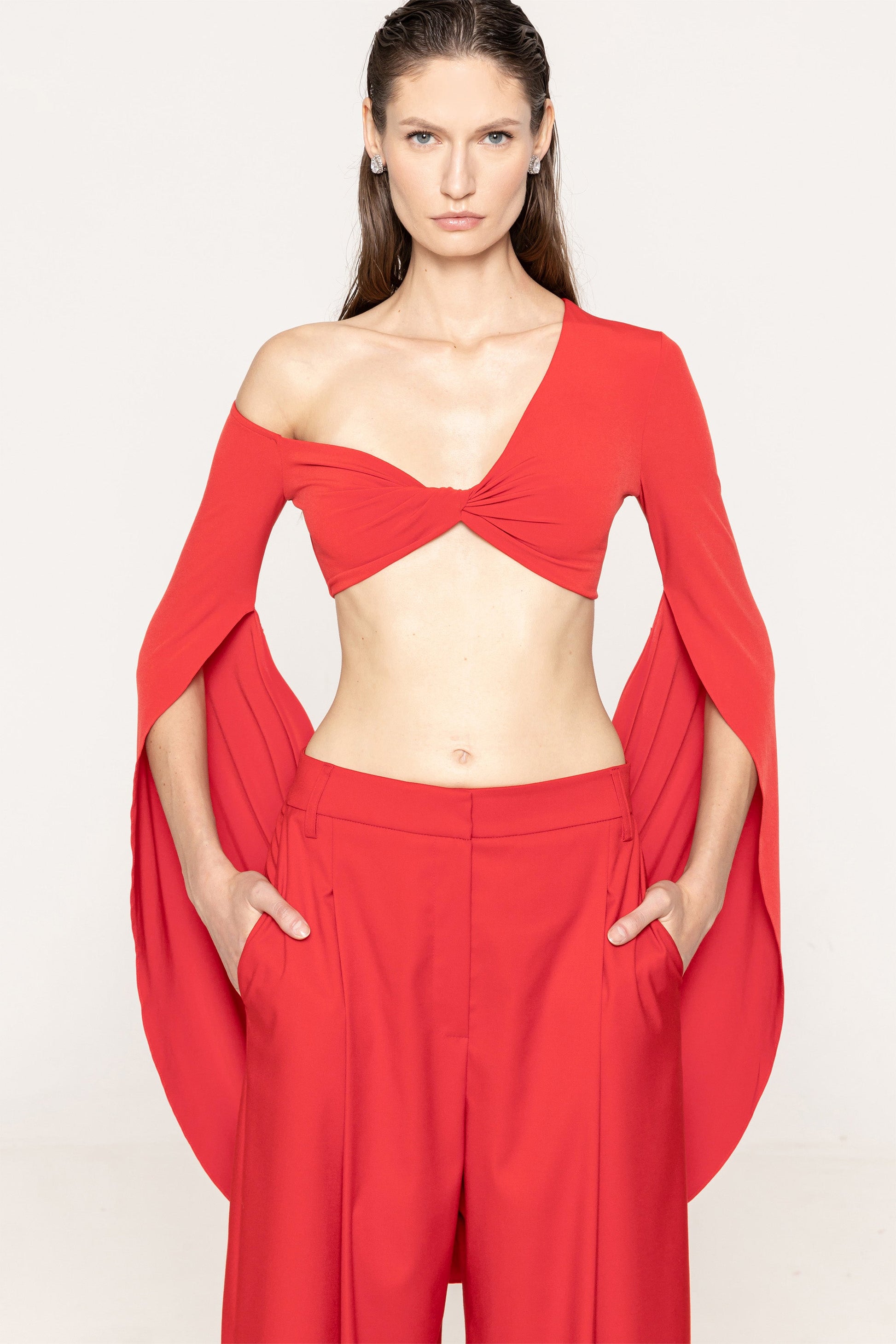 Bold and elegant, these red tapered pants with a mid-rise waist combine style and comfort for standout looks at work or events.