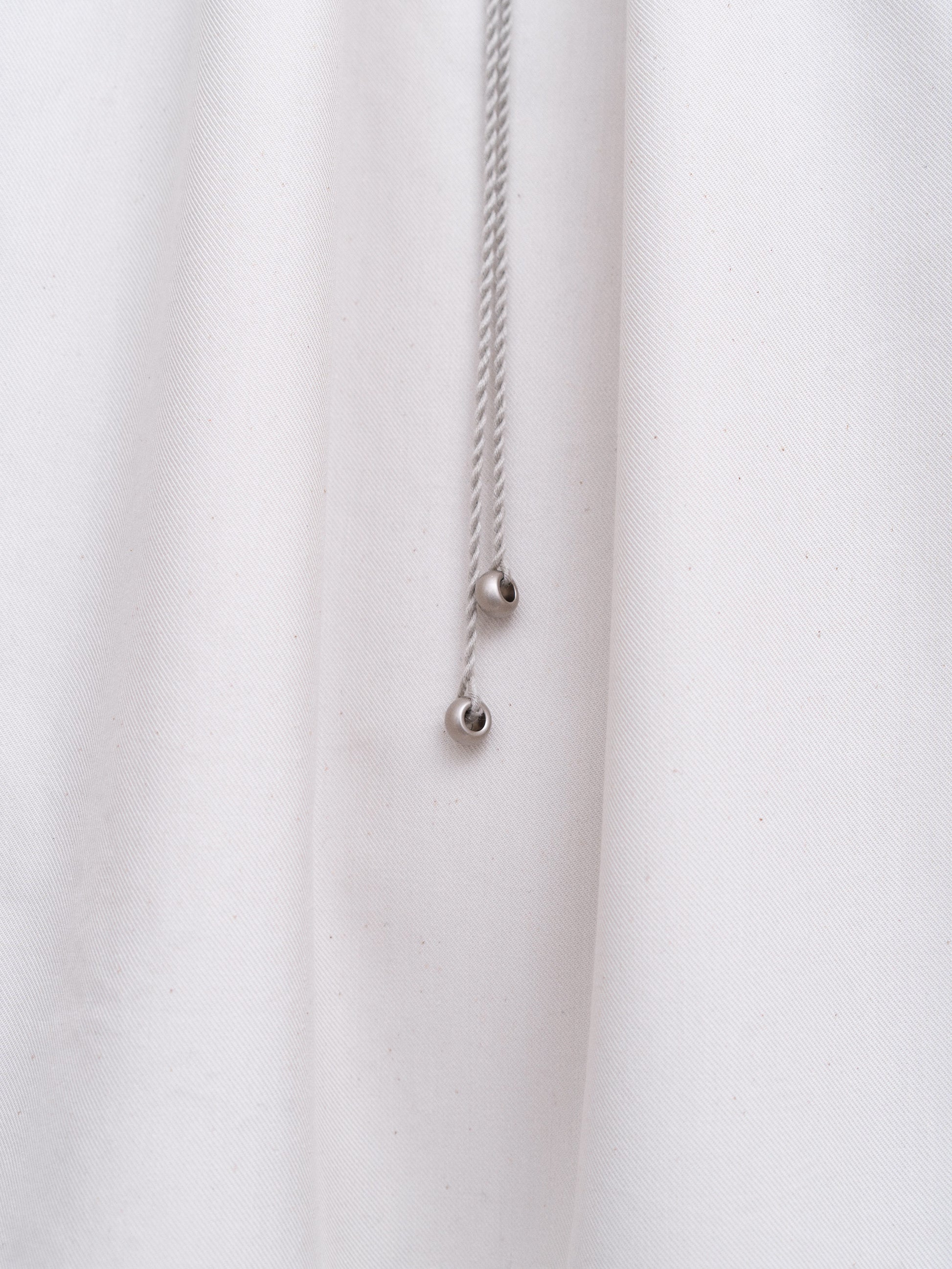 The fabric is soft to the touch yet holds the shape well due to its dense weave. The neckline slit is fastened with ties complemented by metal beads.