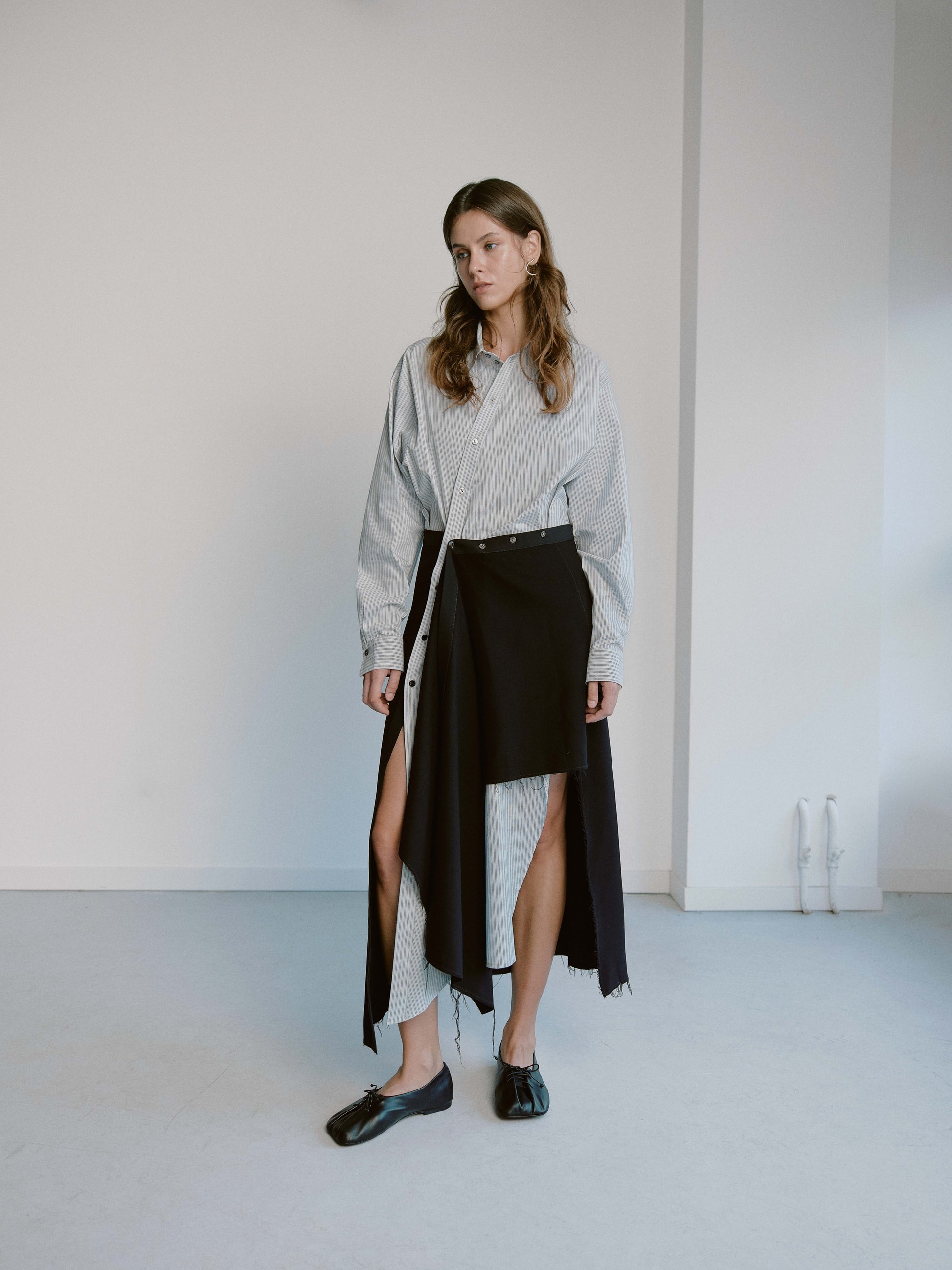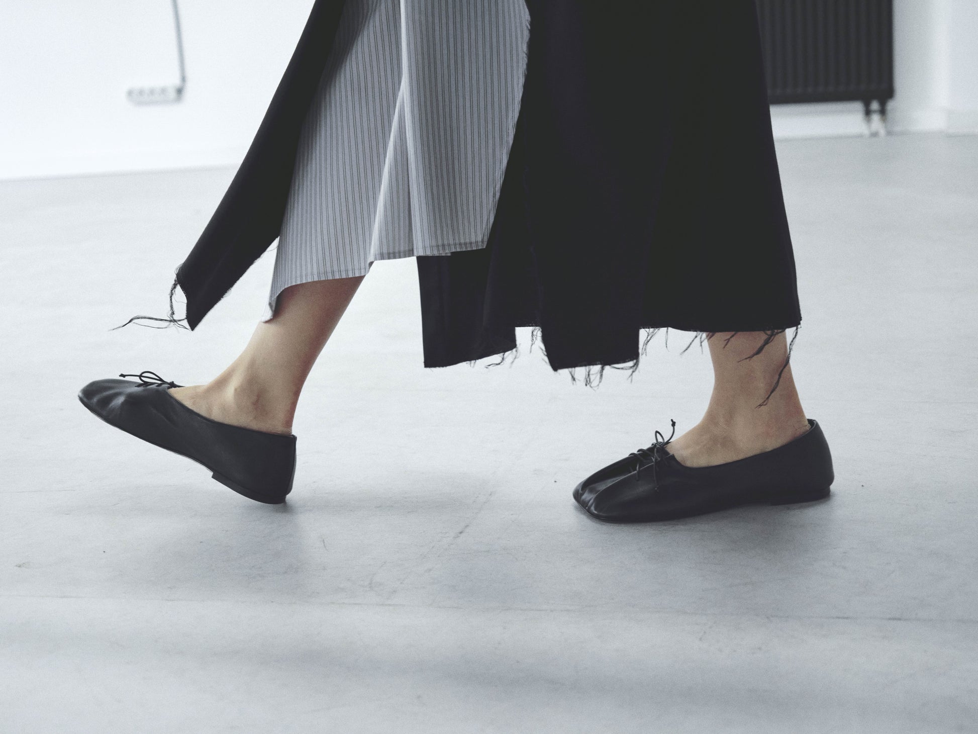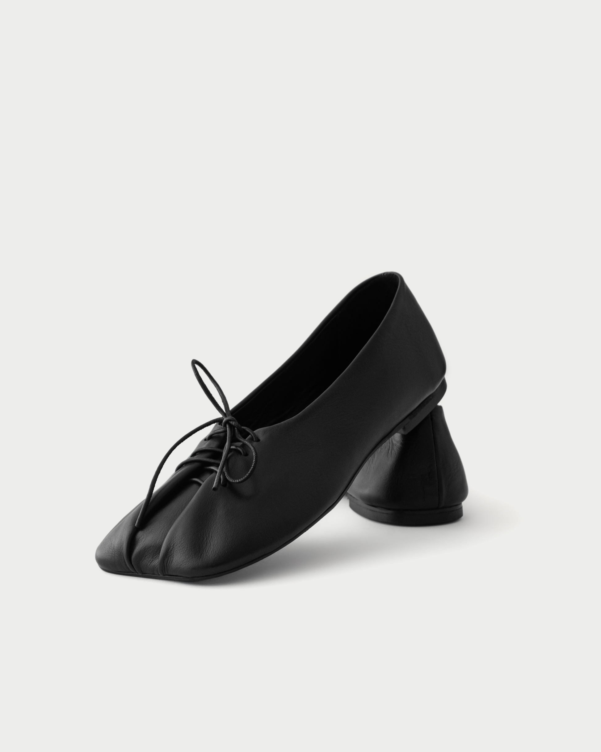 Made of the softest calfskin and lining. They are folded on your foot with a leather cord. The cord also regulates the fullness of the ballet flats, which is why they are suitable for any height and foot width.