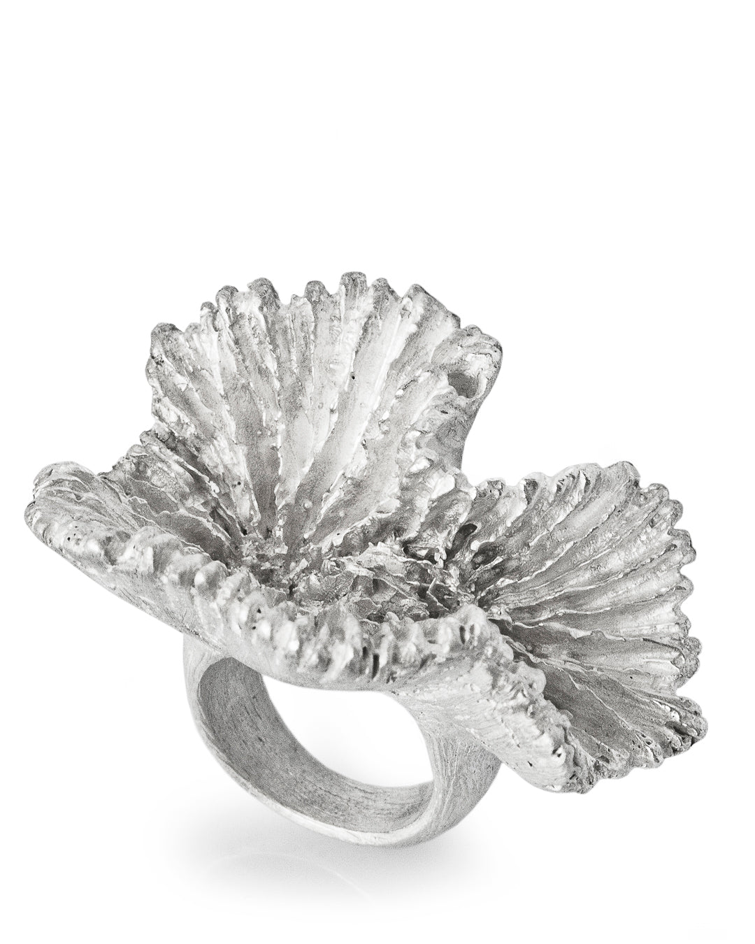 Crafted from white milk silver, this piece radiates purity and sophistication, offering a timeless accessory that’s as unique as the corals that inspired it.