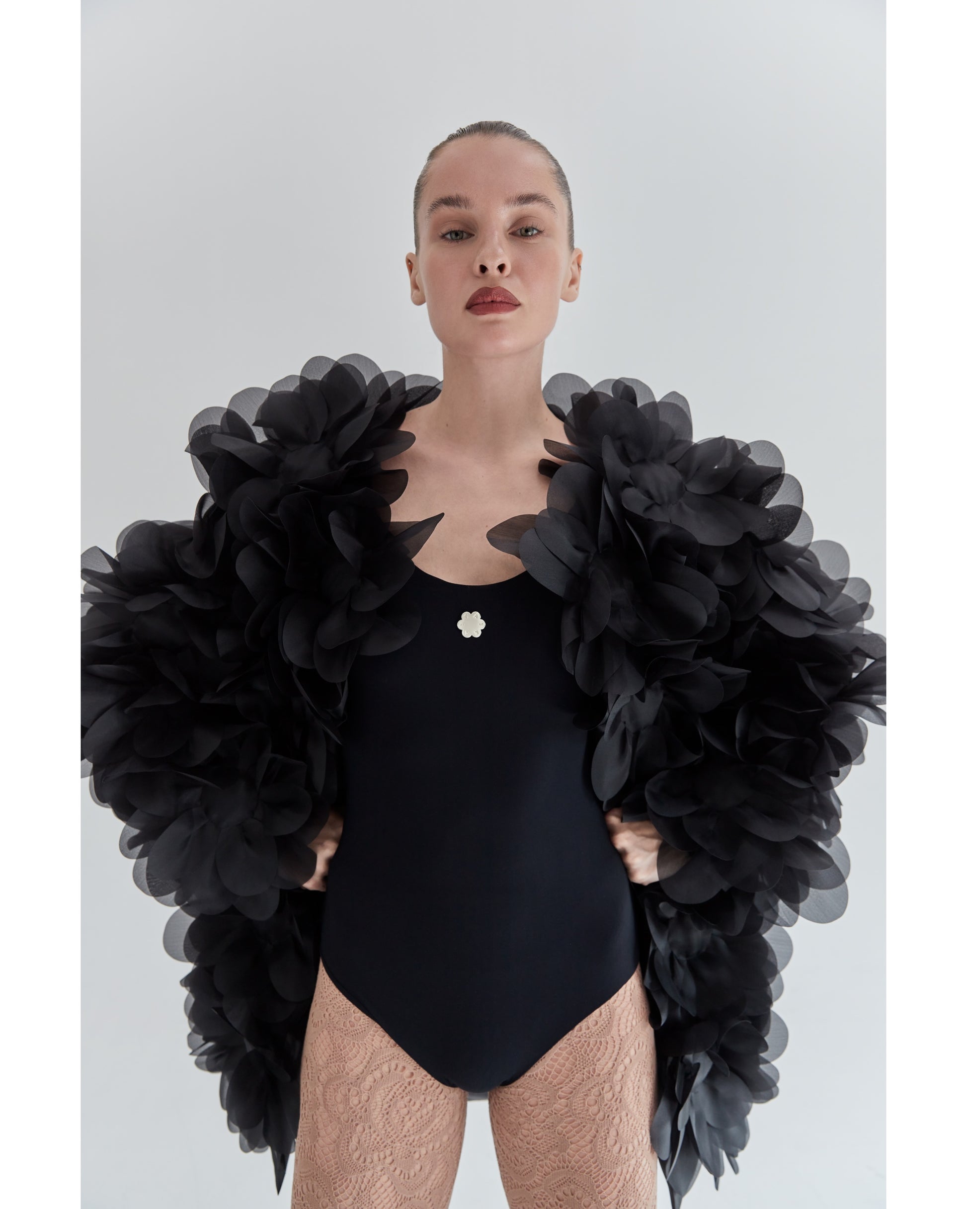 An organza coat is embellished with 3D peony flowers that reveal the beauty of feminine nature. 1,062 petals are crafted using PASKAL’s signature laser-cut technique and carefully arranged by hand, shaping a piece with a couture character. The PASKAL Peony coat brings softness and ultra-femininity to outfits for special occasions, parties, or those moments when you simply feel like blooming.