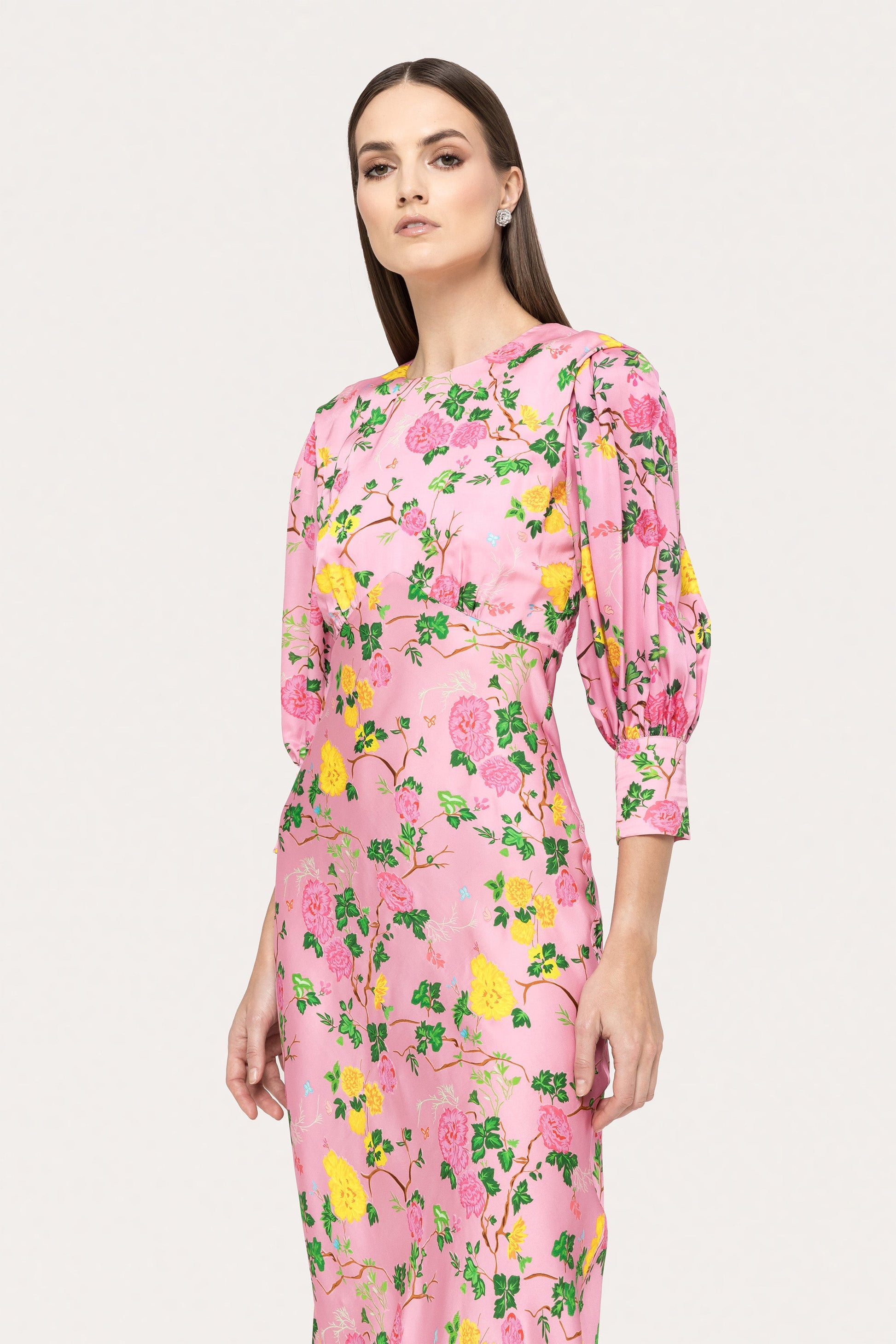 Light and breezy, this printed viscose midi dress combines soft satin texture with floral prints, making it ideal for daytime events, cocktail parties, and casual chic looks.