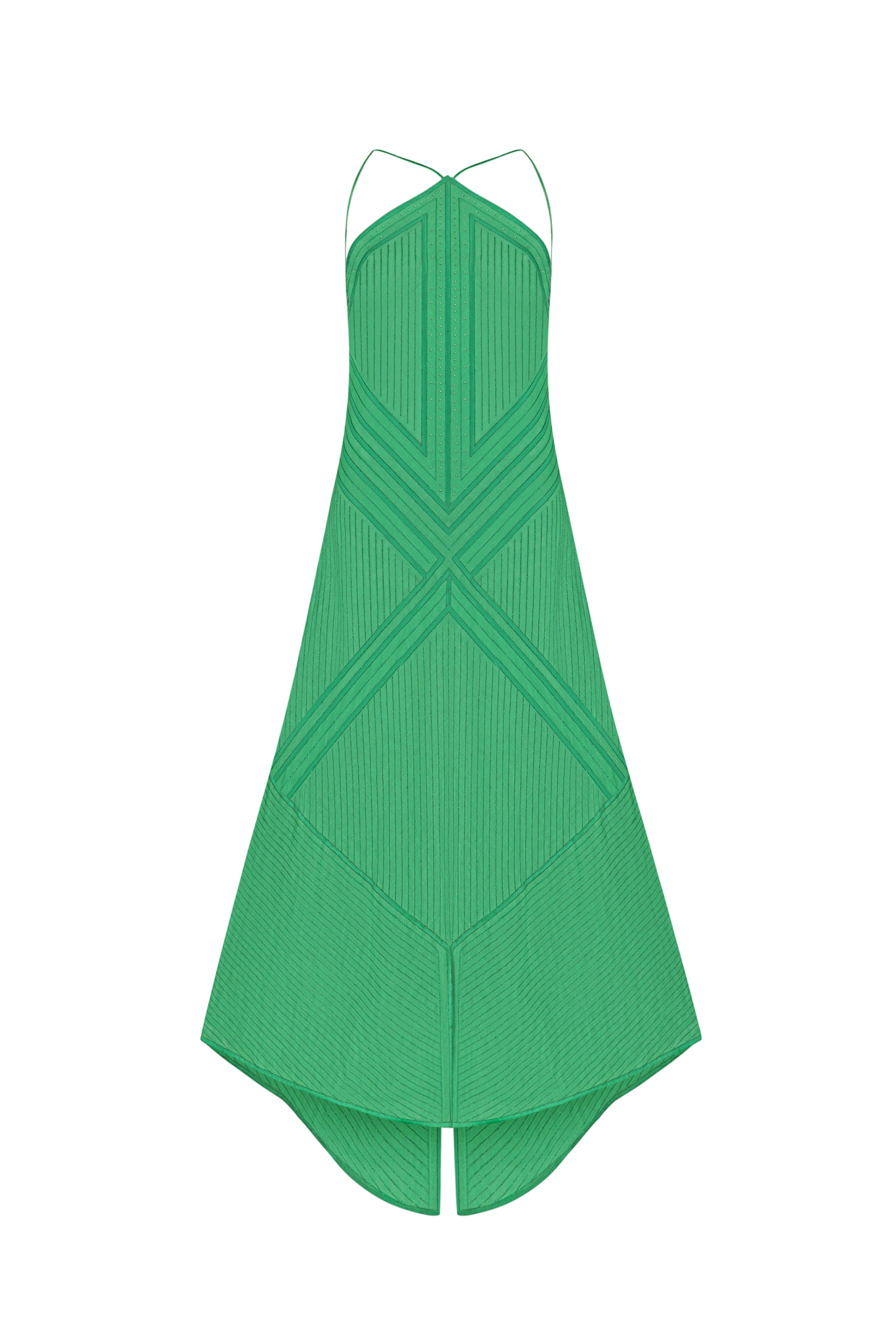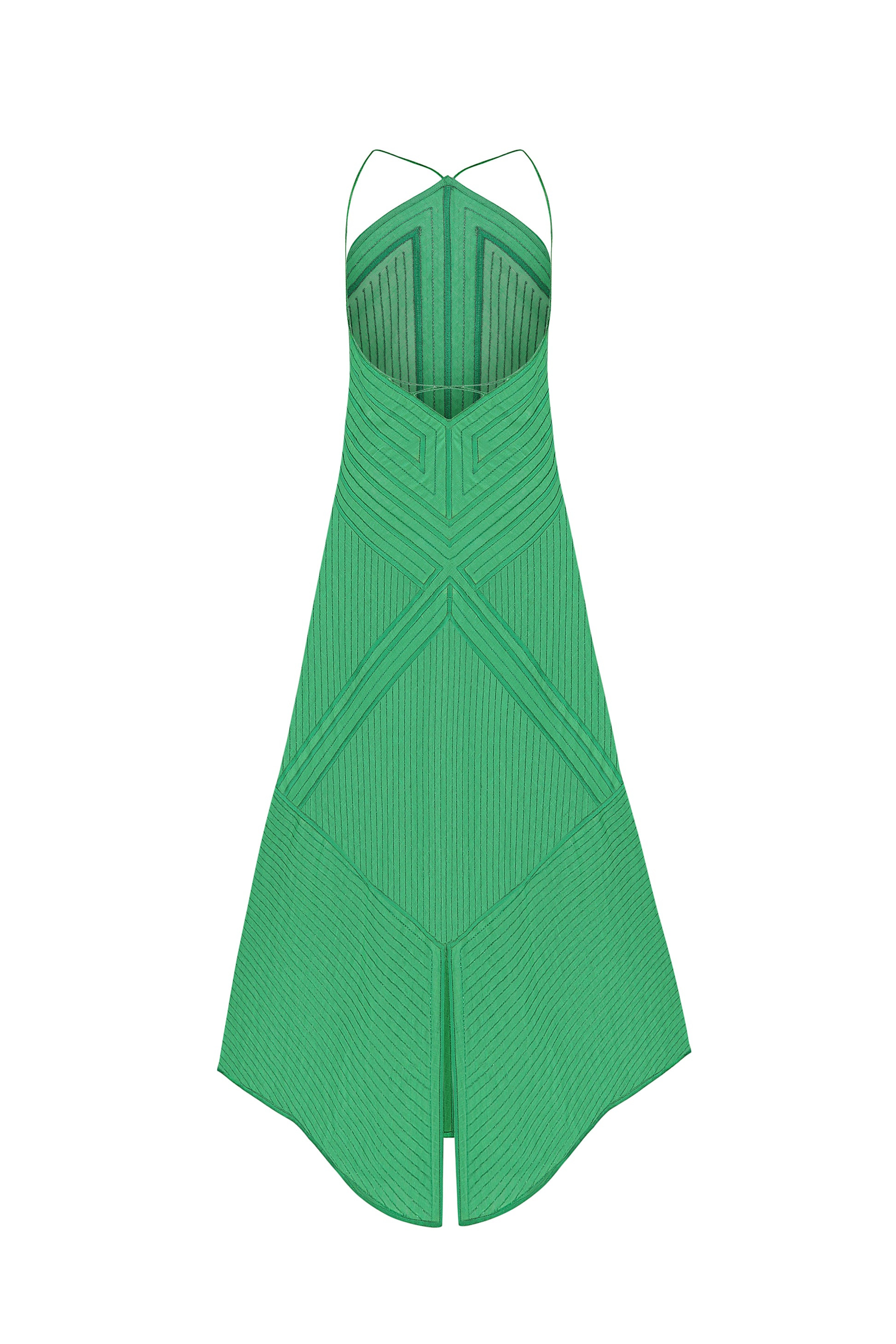 The Rain Prayer Long Sarafan has a soft shape that perfectly accentuates the bends of the body. Lightweight linen is complemented by a variety of embroidered stripes, creating an elegant translucent image. Lurex creates a shimmering evening effect. The neckline and front of the dress are lavishly hand-sewn with 24-carat gold plated beads.