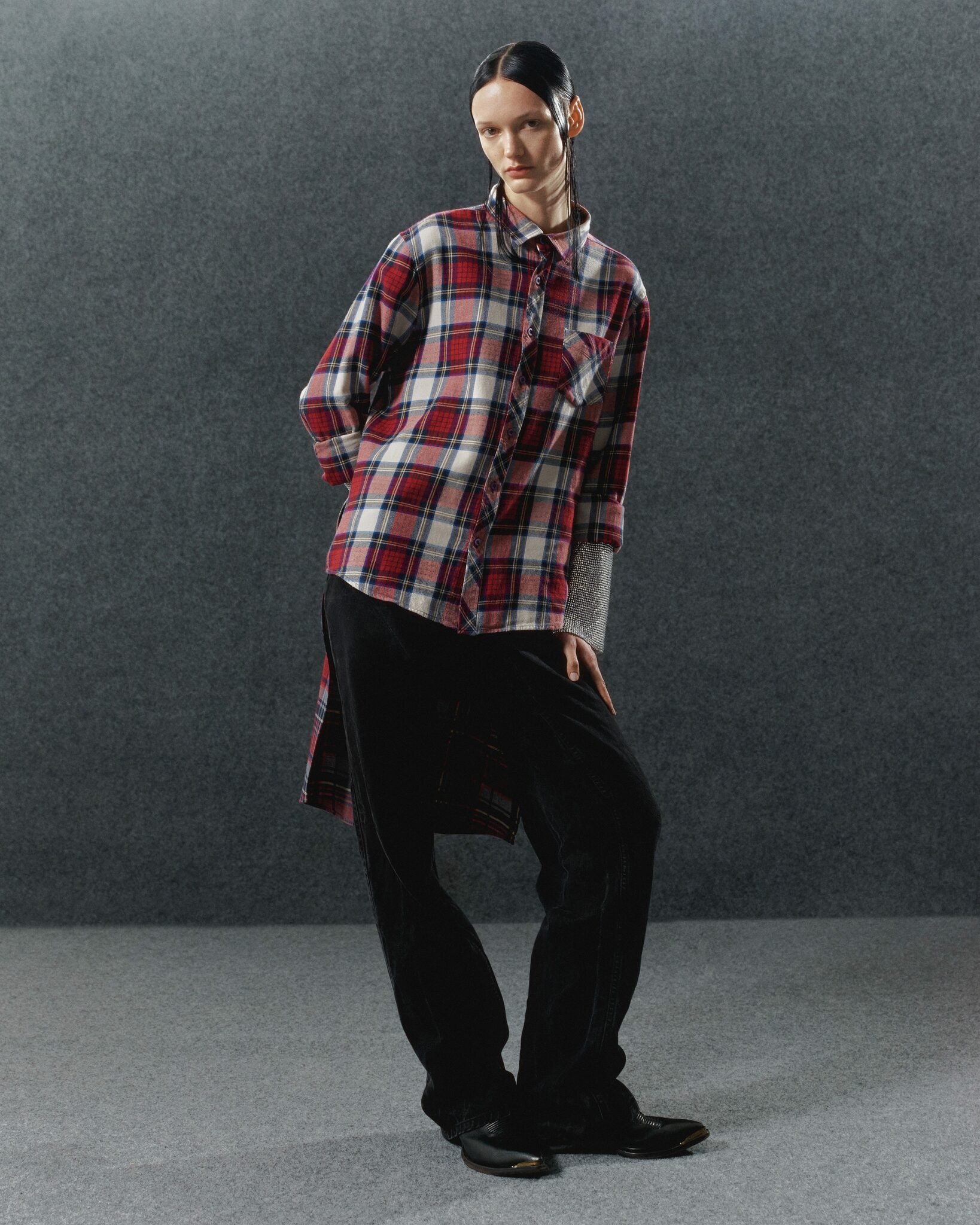 Unveil the perfect balance of style and sophistication with the REDESIGNED SHIRT 125 OMELIA. Featuring an extended back design and crystal mesh fabric extensions on the sleeves, this shirt offers a modern twist with the ability to roll up the sleeves and reveal dazzling details. A must-have for those who appreciate unique, versatile fashion.