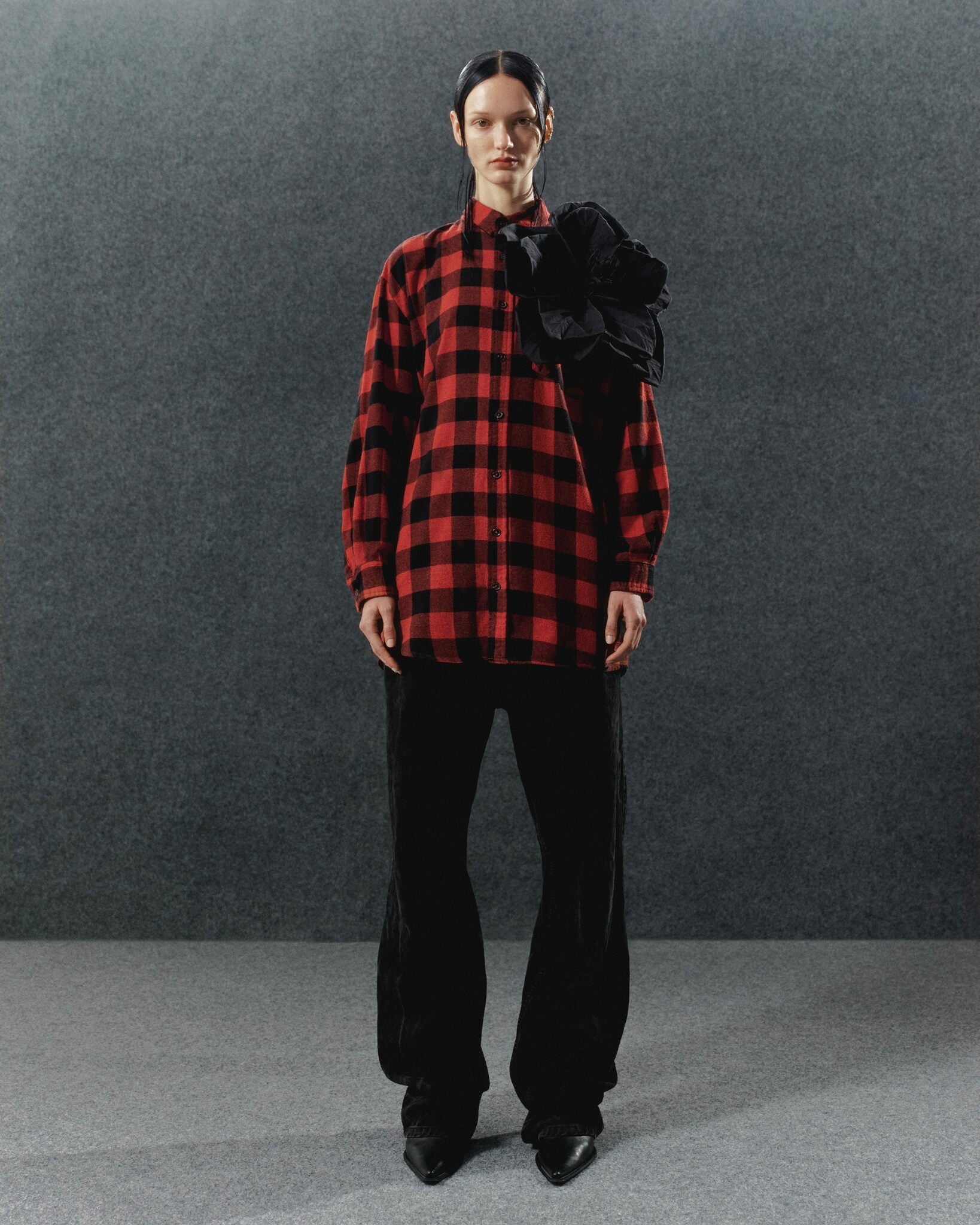 Introducing the REDESIGNED SHIRT 128 OMELIA, a truly unique piece that combines contemporary style with artisanal craftsmanship. This shirt features a removable handmade flower, allowing you to add a touch of elegance or remove it for a more minimalist look. The flower’s intricate design and 40 cm diameter make it a striking statement piece.