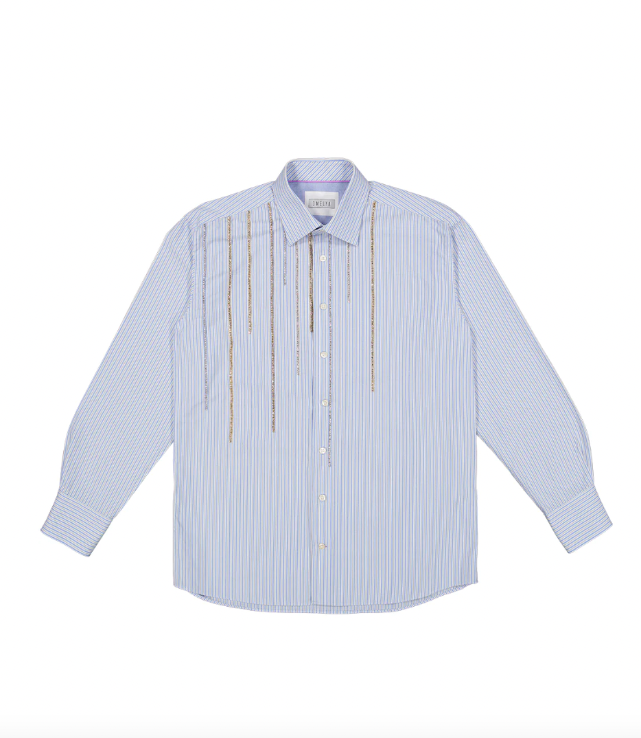 The striped shirt, some stripes are hand-decorated with rhinestone strass chain.