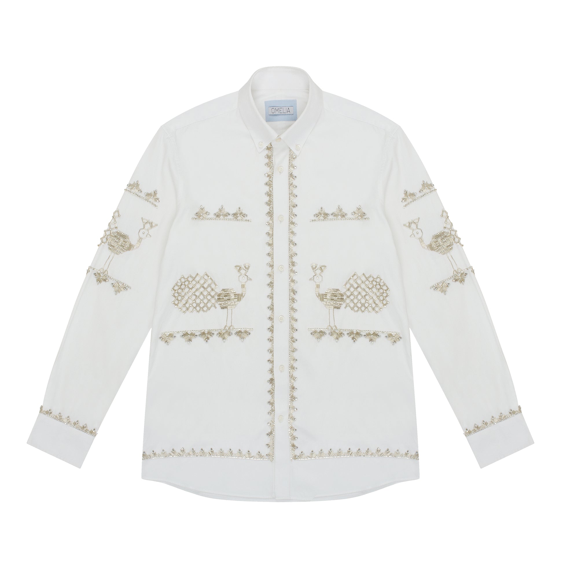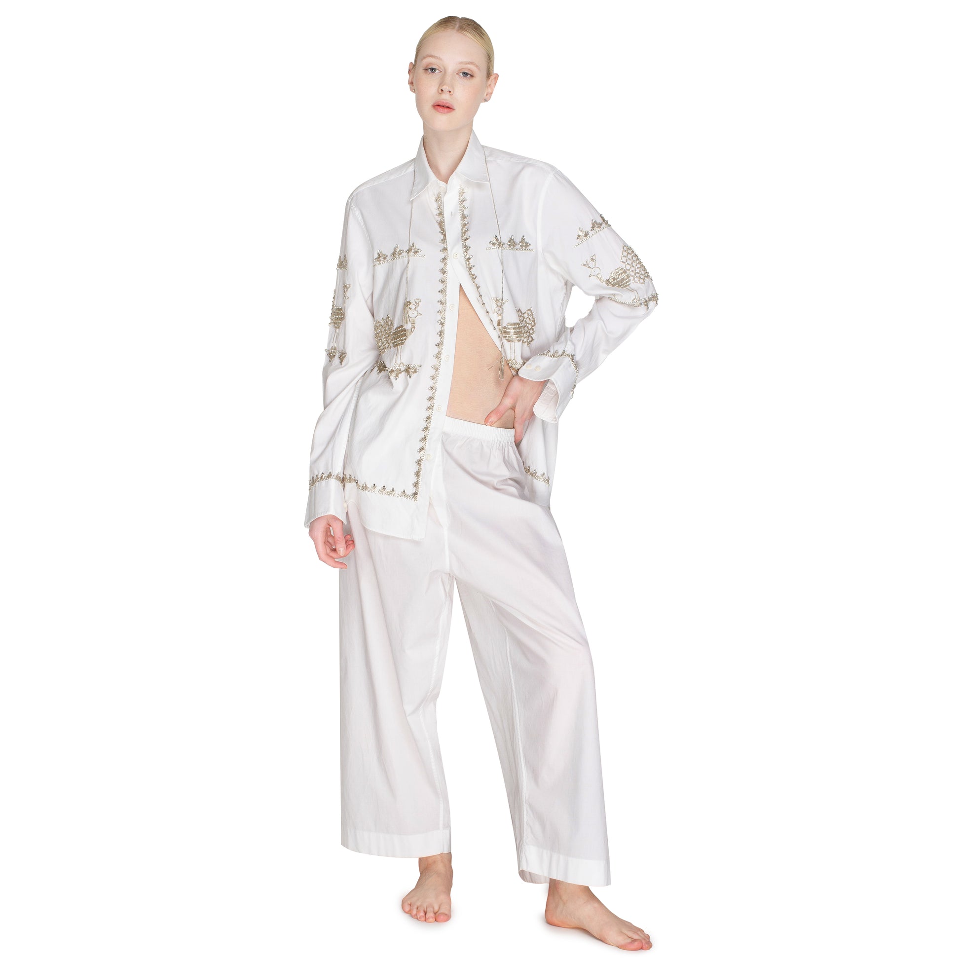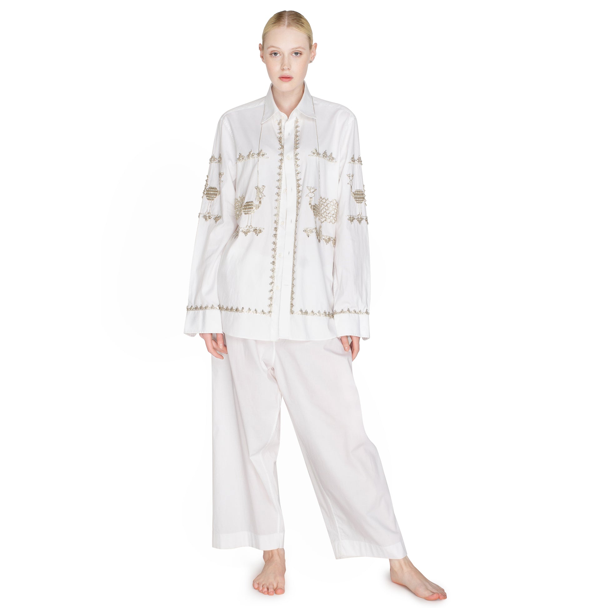 Shirt embroidered by hand with glass beads, crystals and strass chain