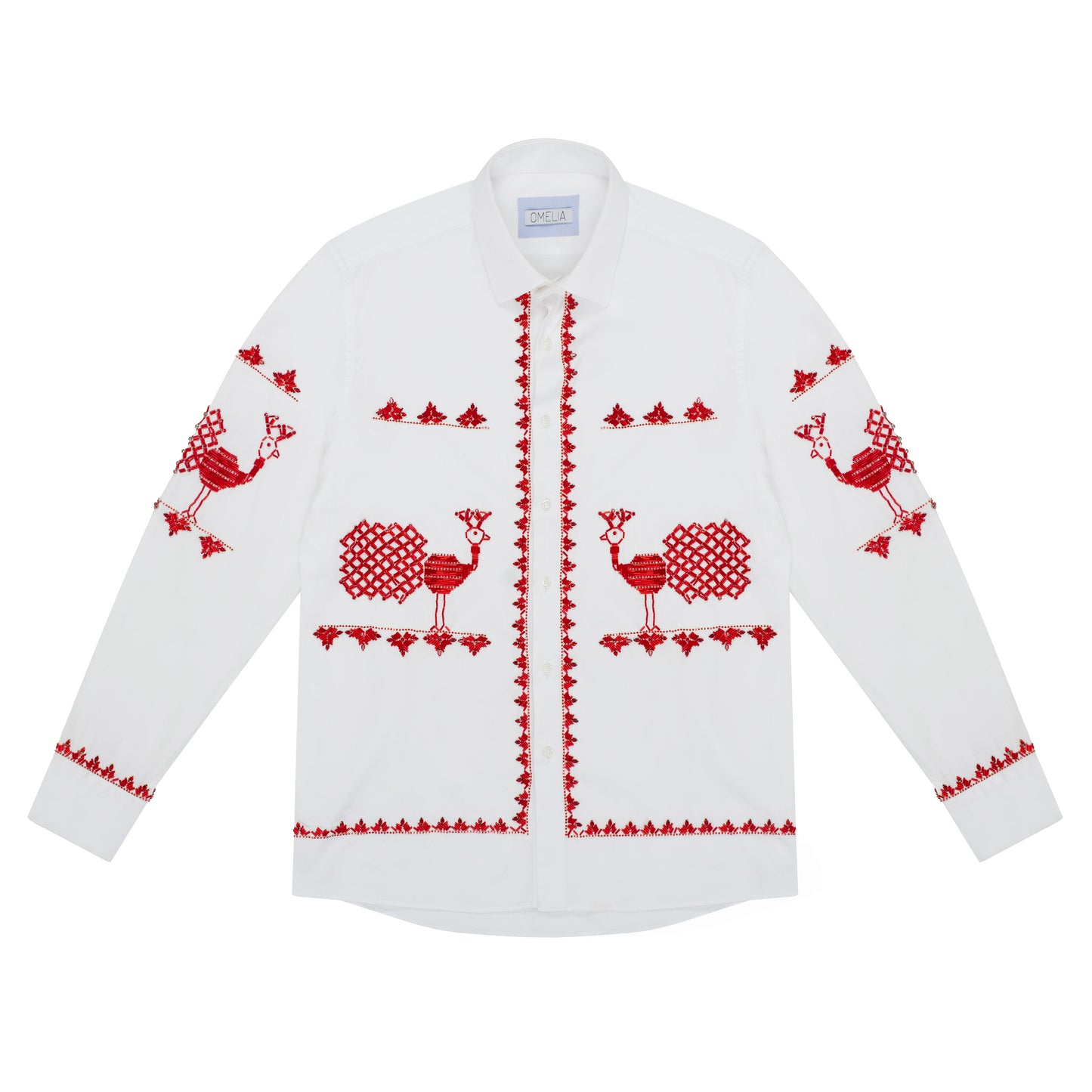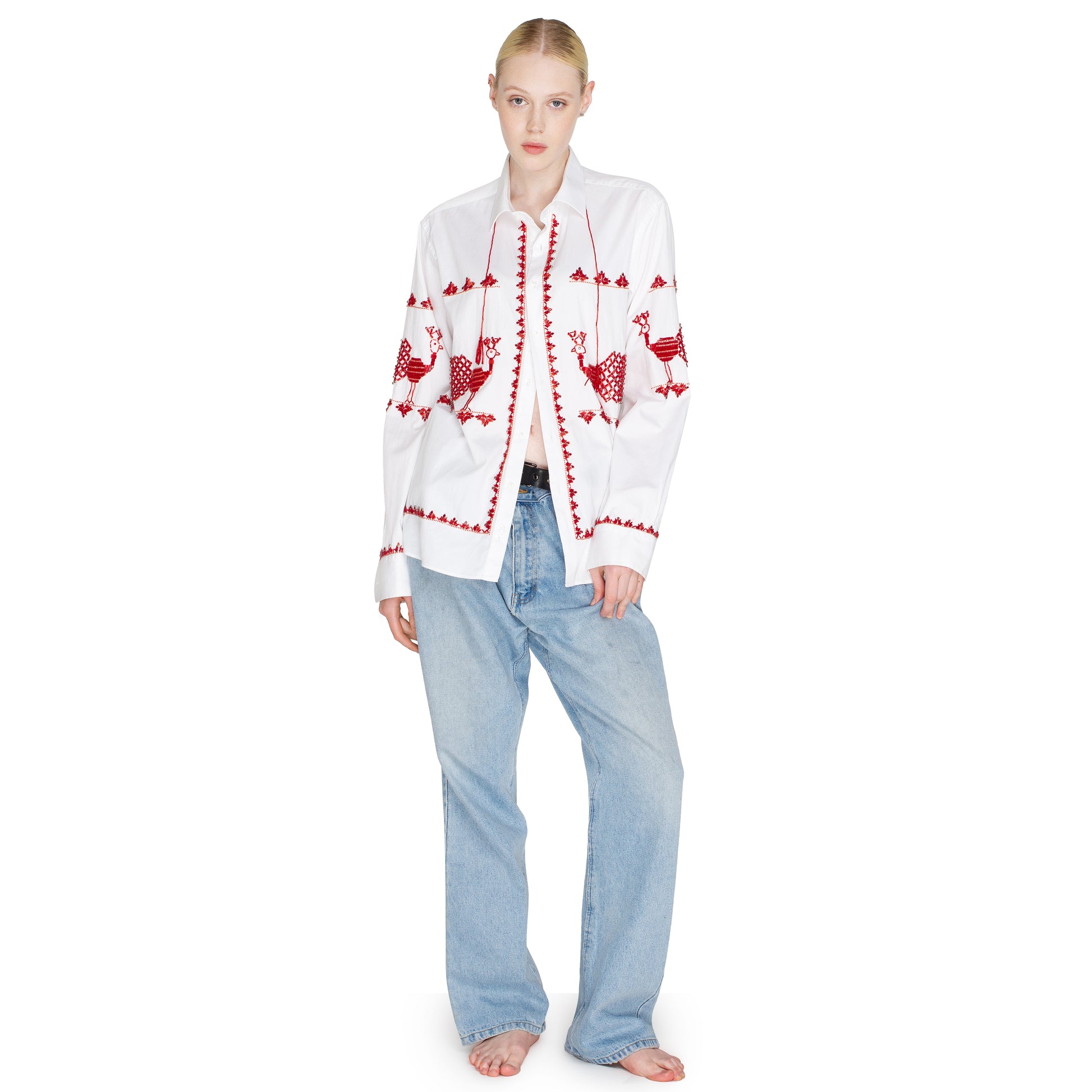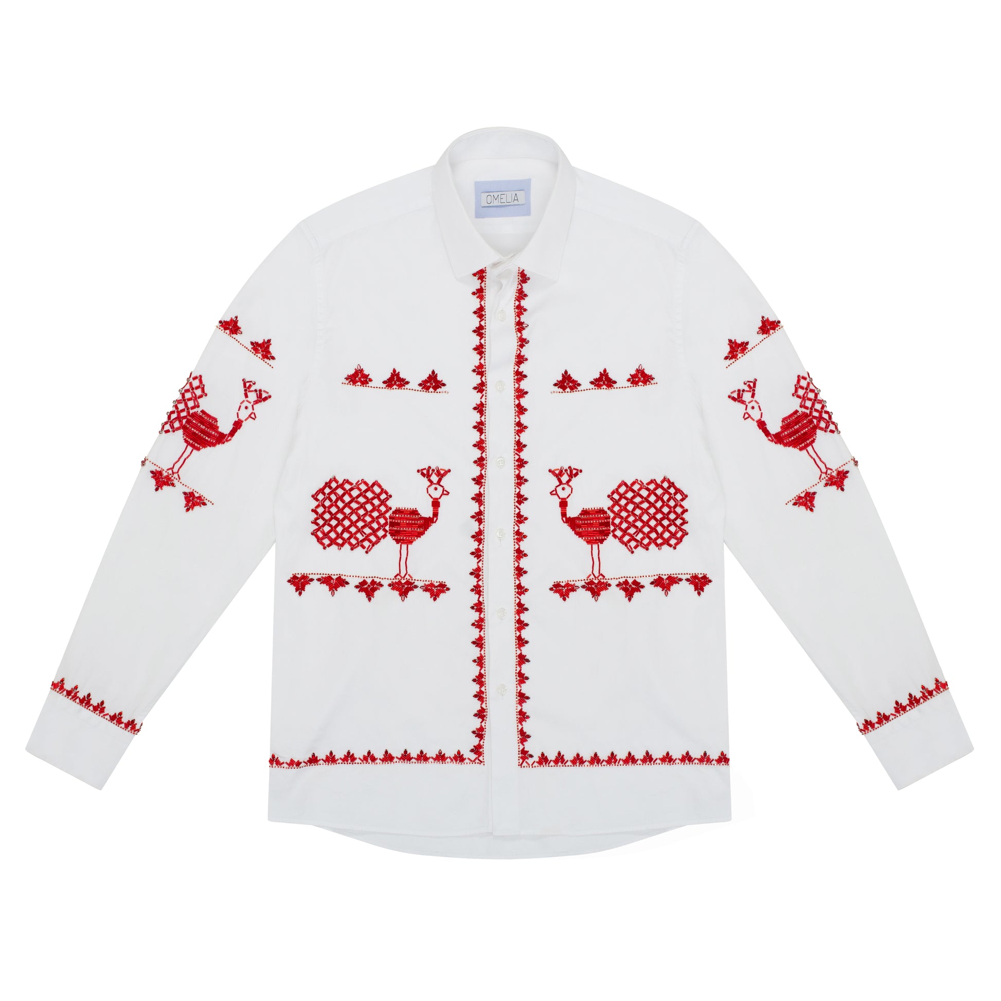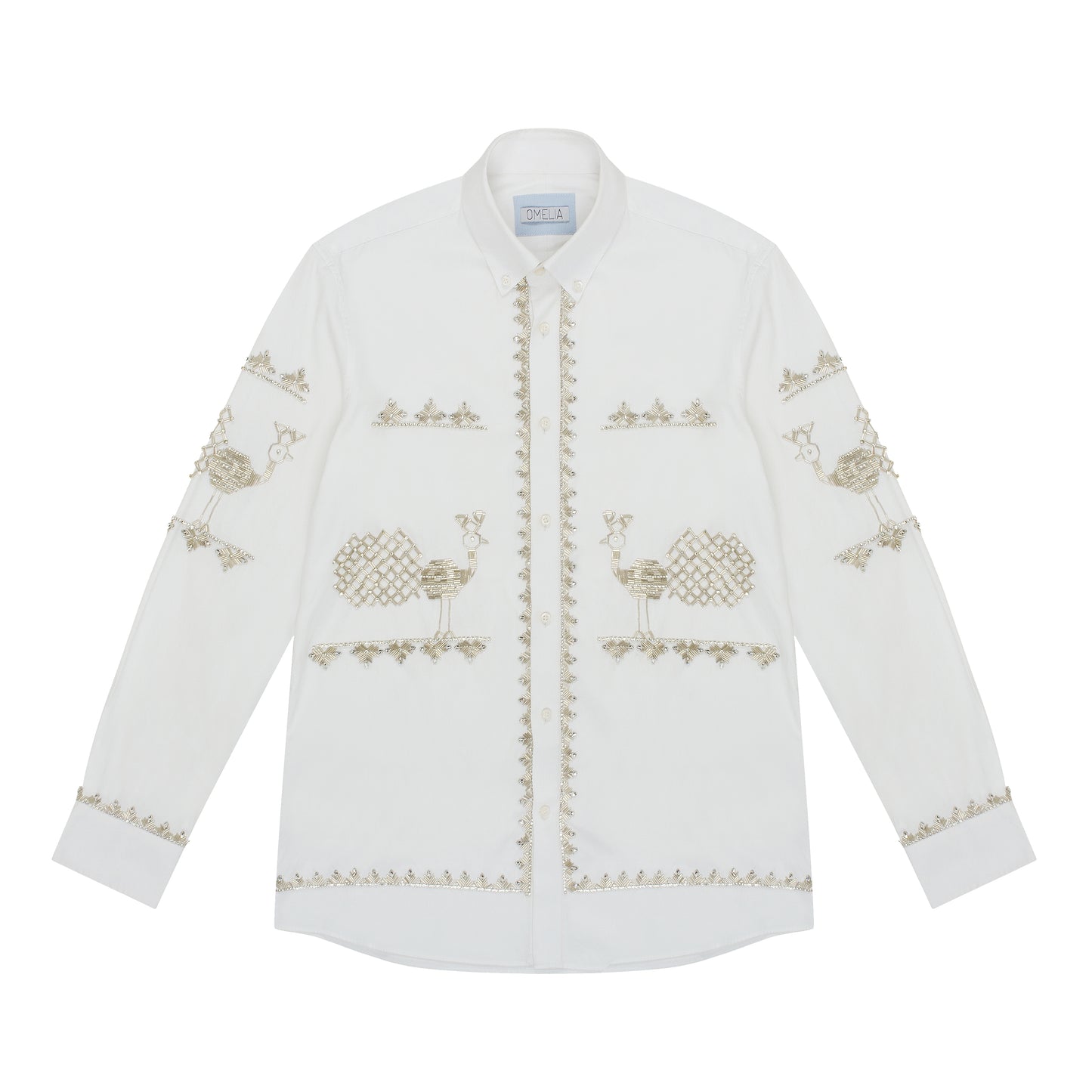 Shirt embroidered by hand with glass beads, crystals and strass chain
