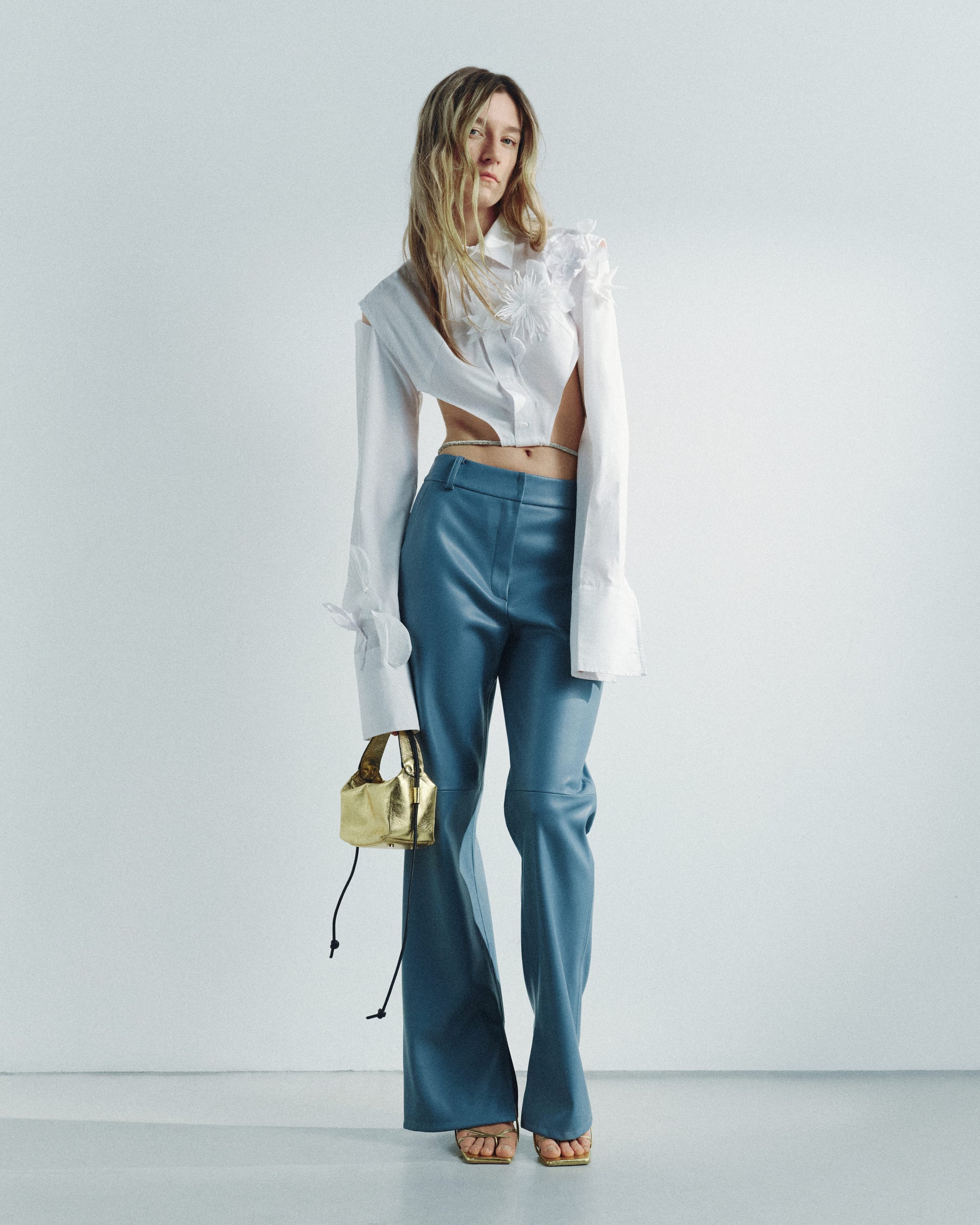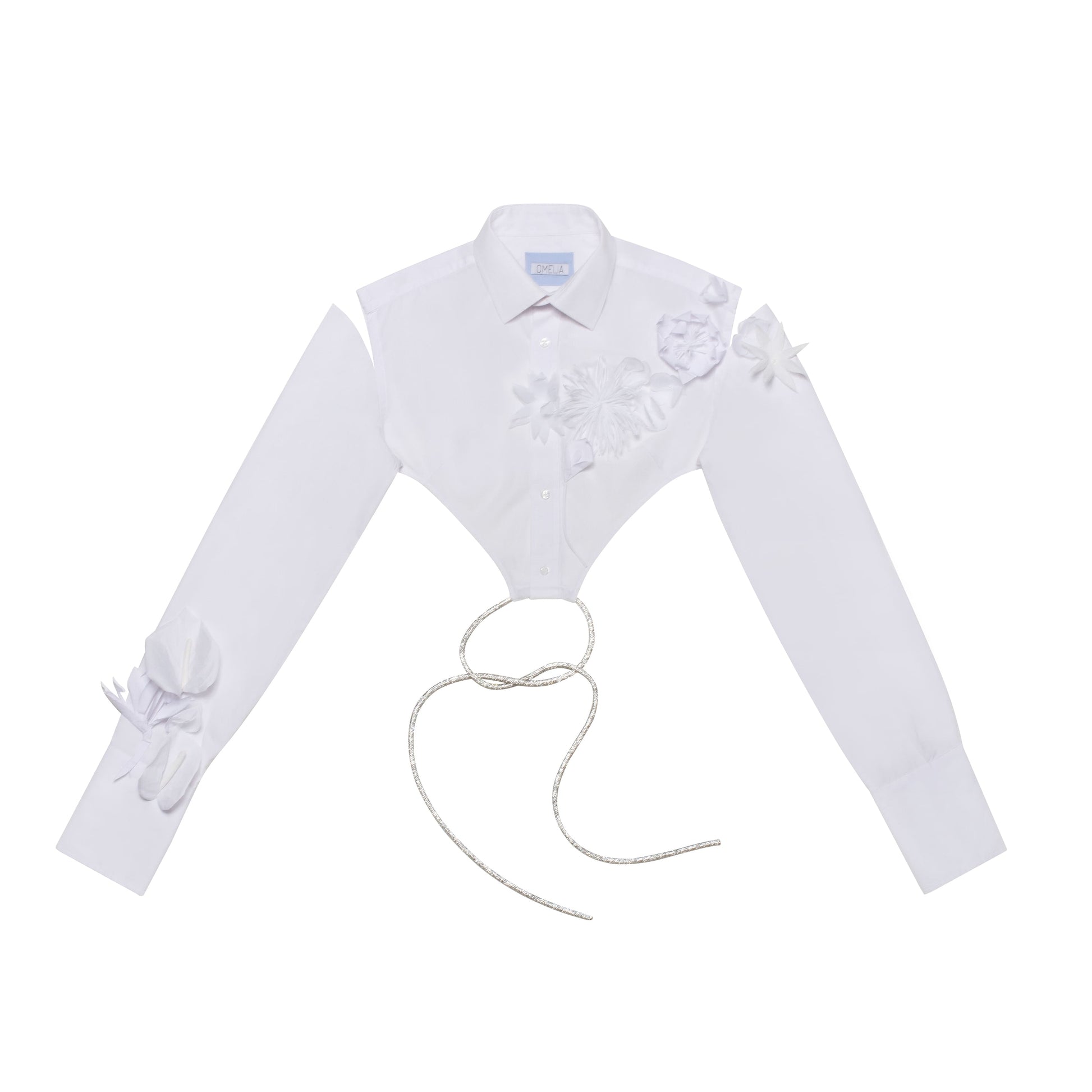 Top with slits on the shoulders, decorated with handmade flowers. Belt is included