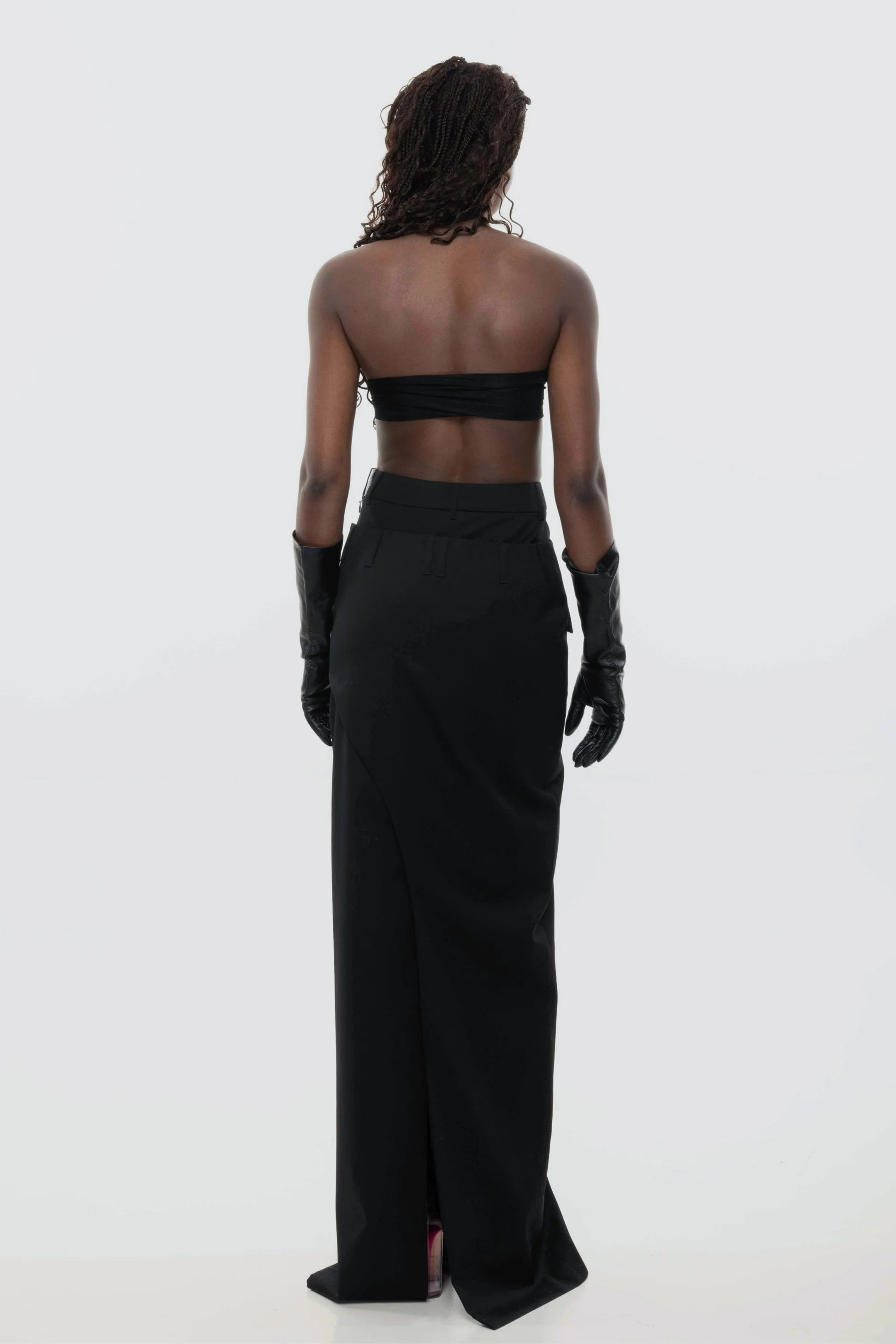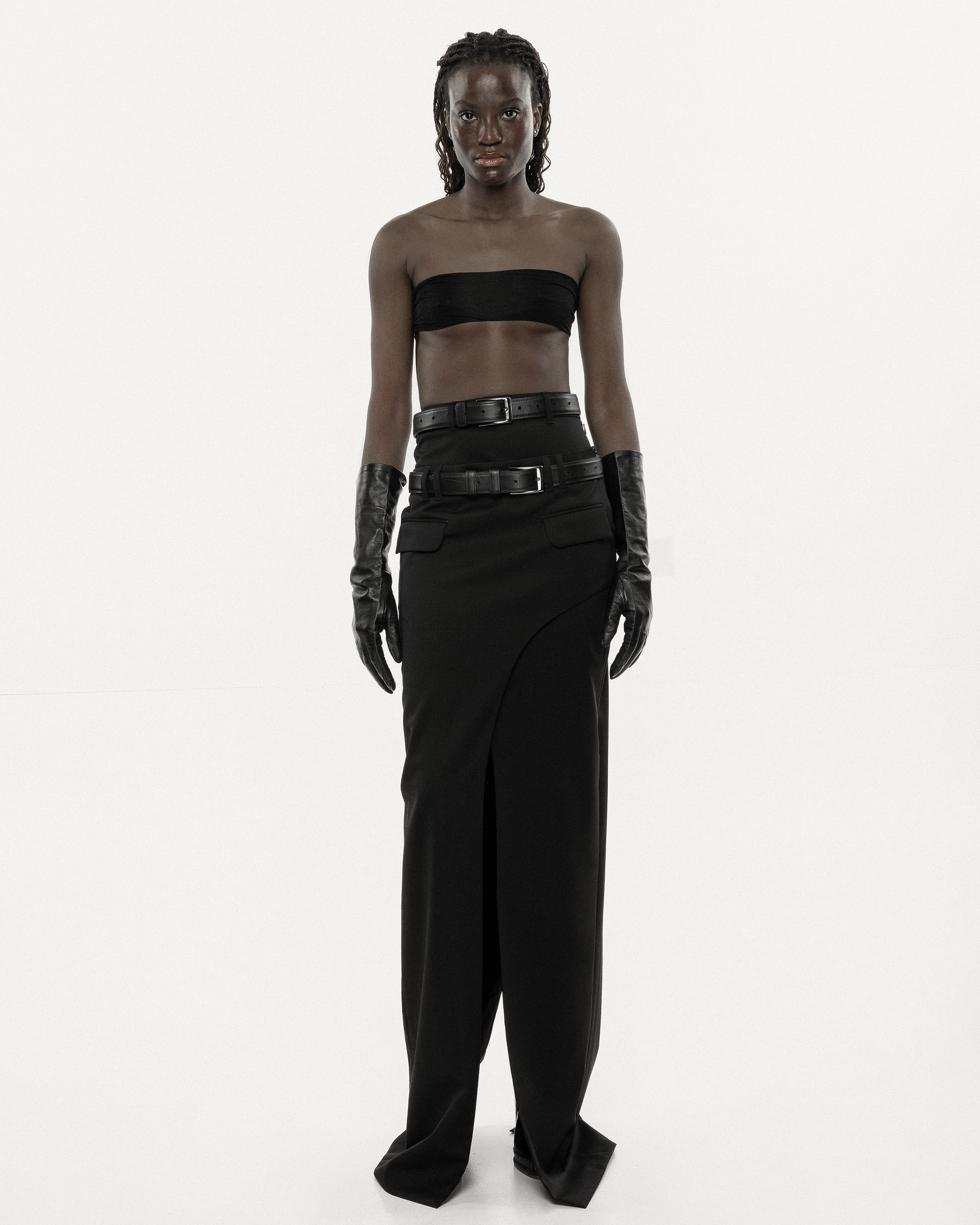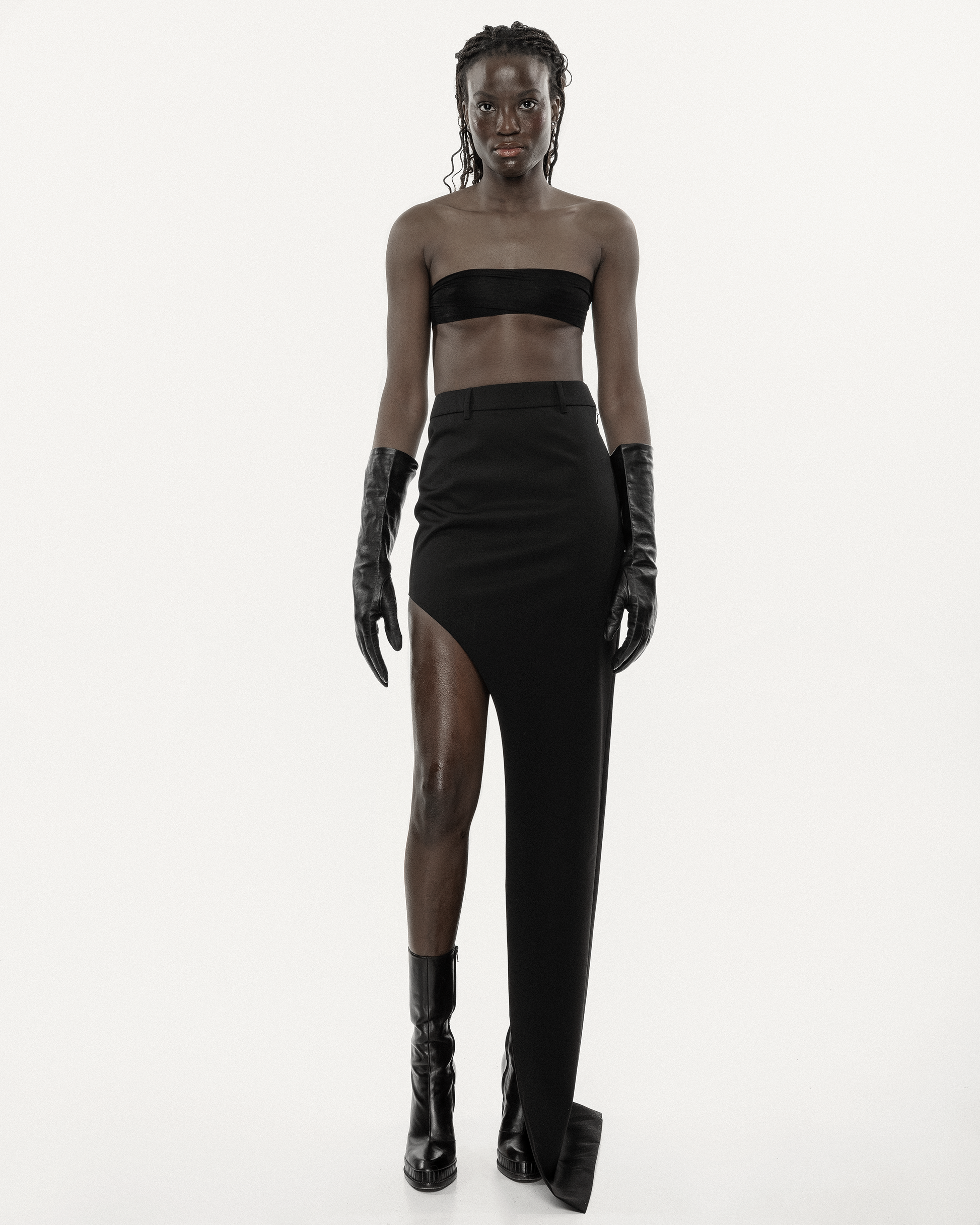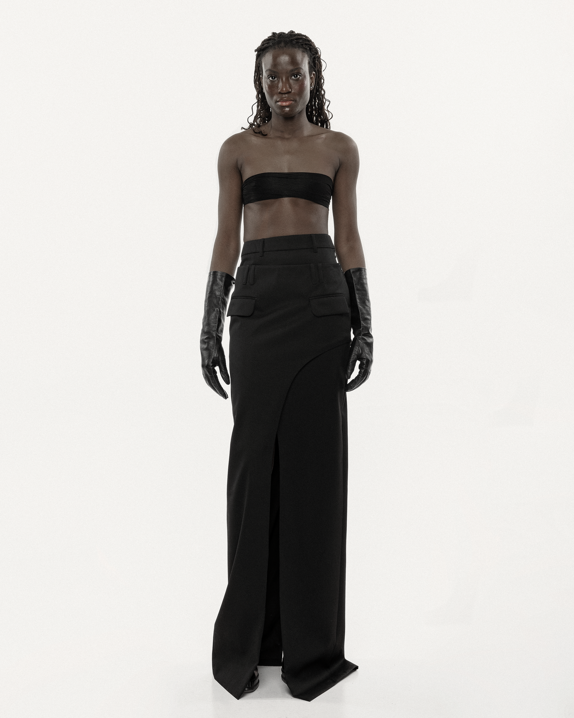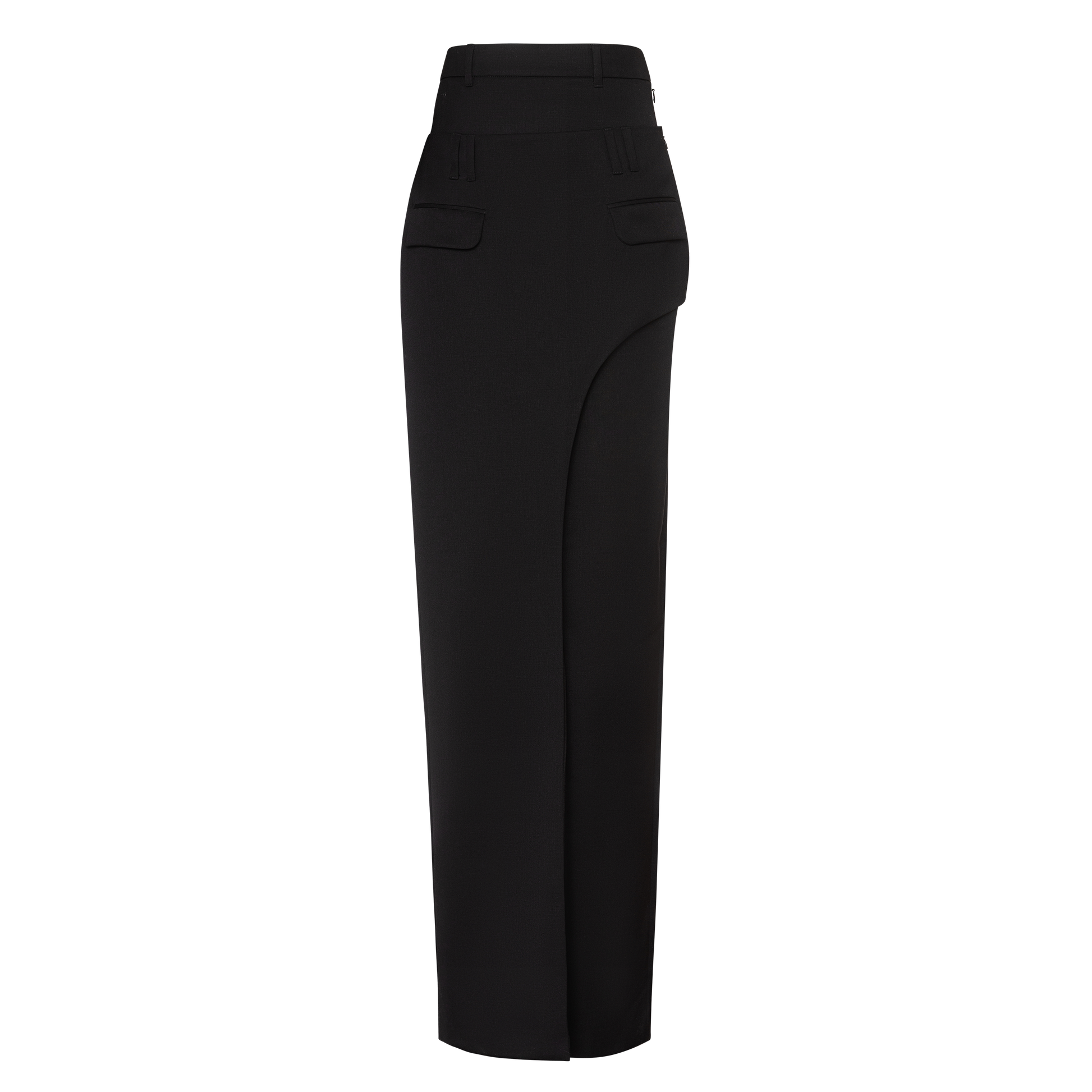 Skirt by GUDU is a statement piece that pushes the boundaries of design. Featuring a unique double-layer construction, this skirt combines sophistication with an avant-garde twist. The base layer offers a sleek, high-slit design that accentuates your silhouette, while the top layer wraps asymmetrically over it, creating an intriguing contrast. A flap pocket at the front adds a functional yet stylish detail. Crafted from a luxurious blend of 70% wool, 10% silk, and 20% polyester, this skirt is perfect for those who seek to stand out with style and confidence. Handcrafted in Kyiv at the Atelier, it’s a timeless addition to any wardrobe.