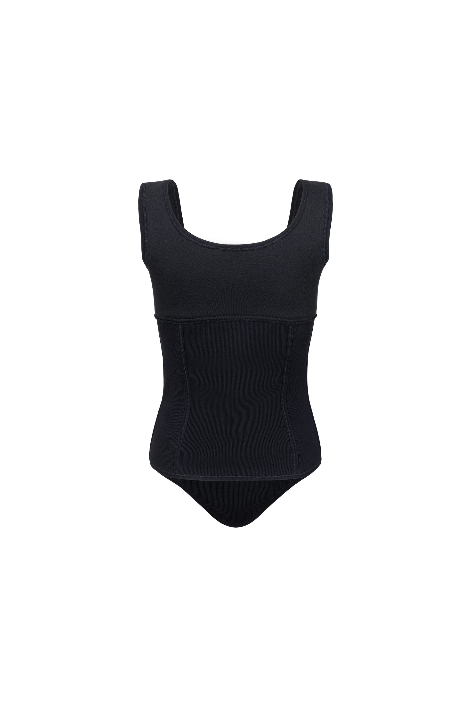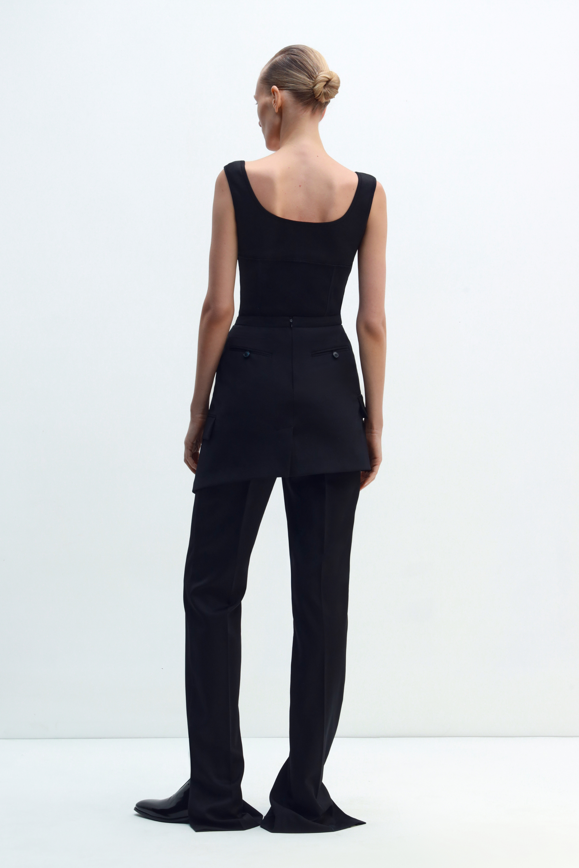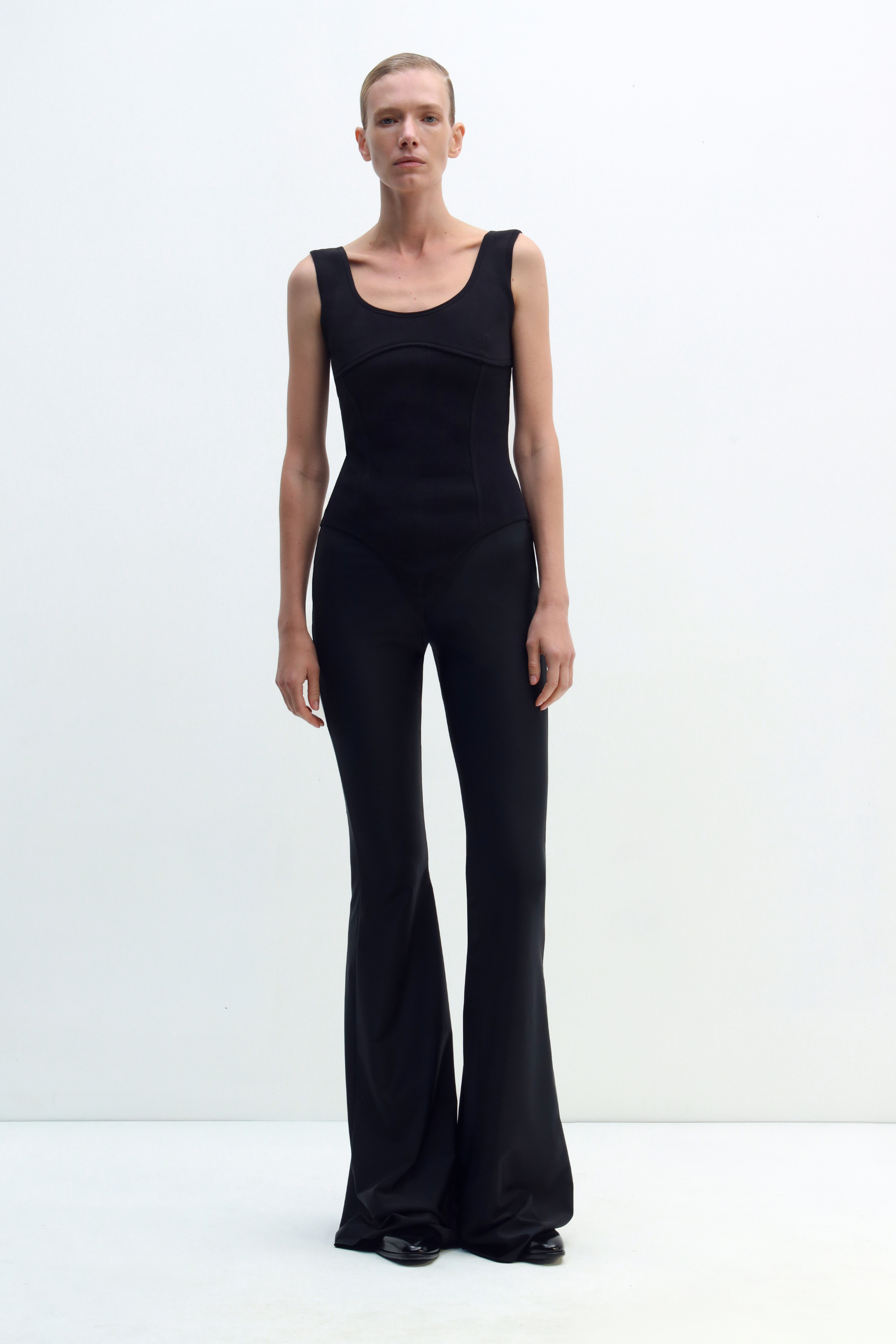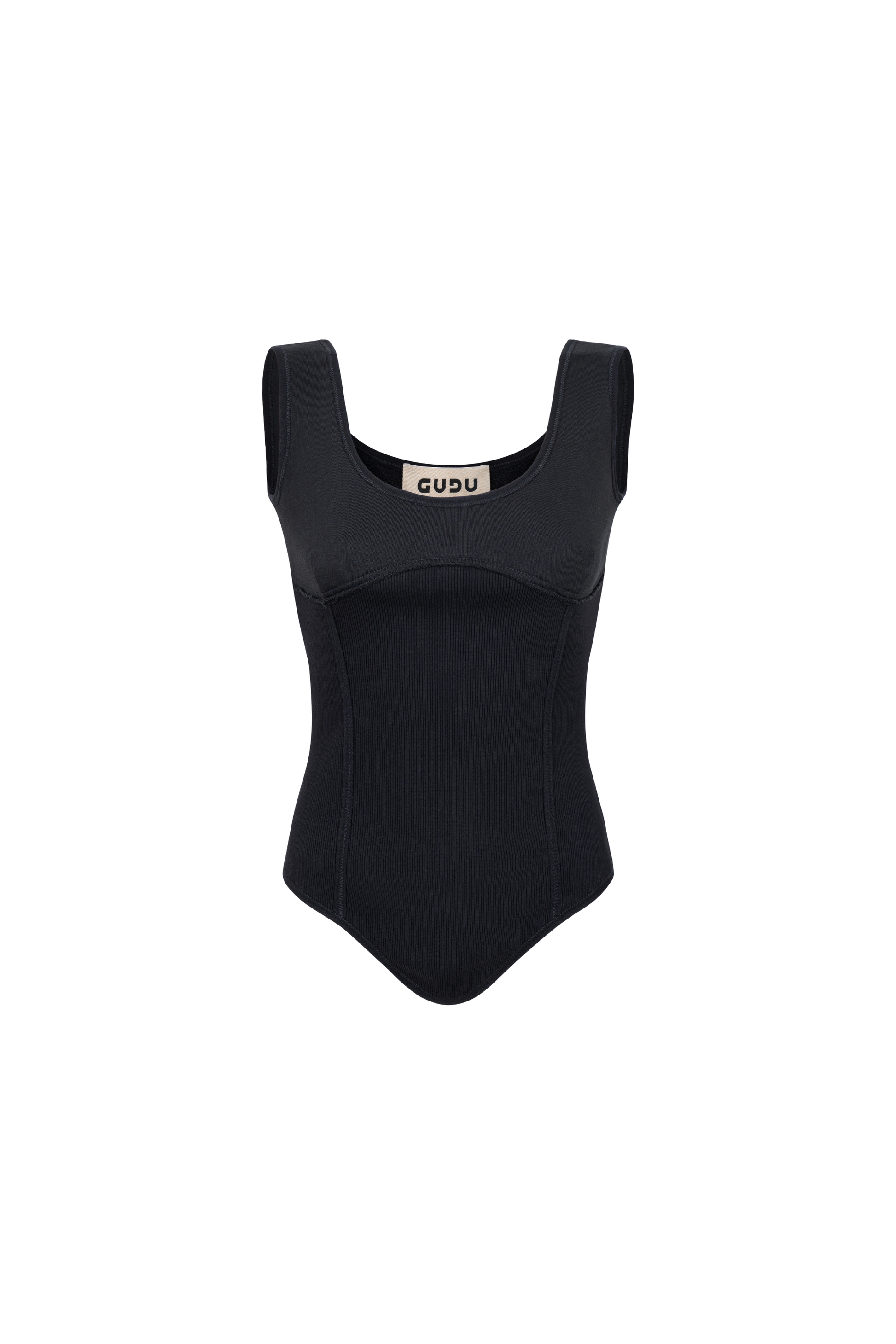 FITTED TOP WITH POINTED HEM AND CONTOURED SEAMS THAT FOLLOW THE BODY SILHOUETTE