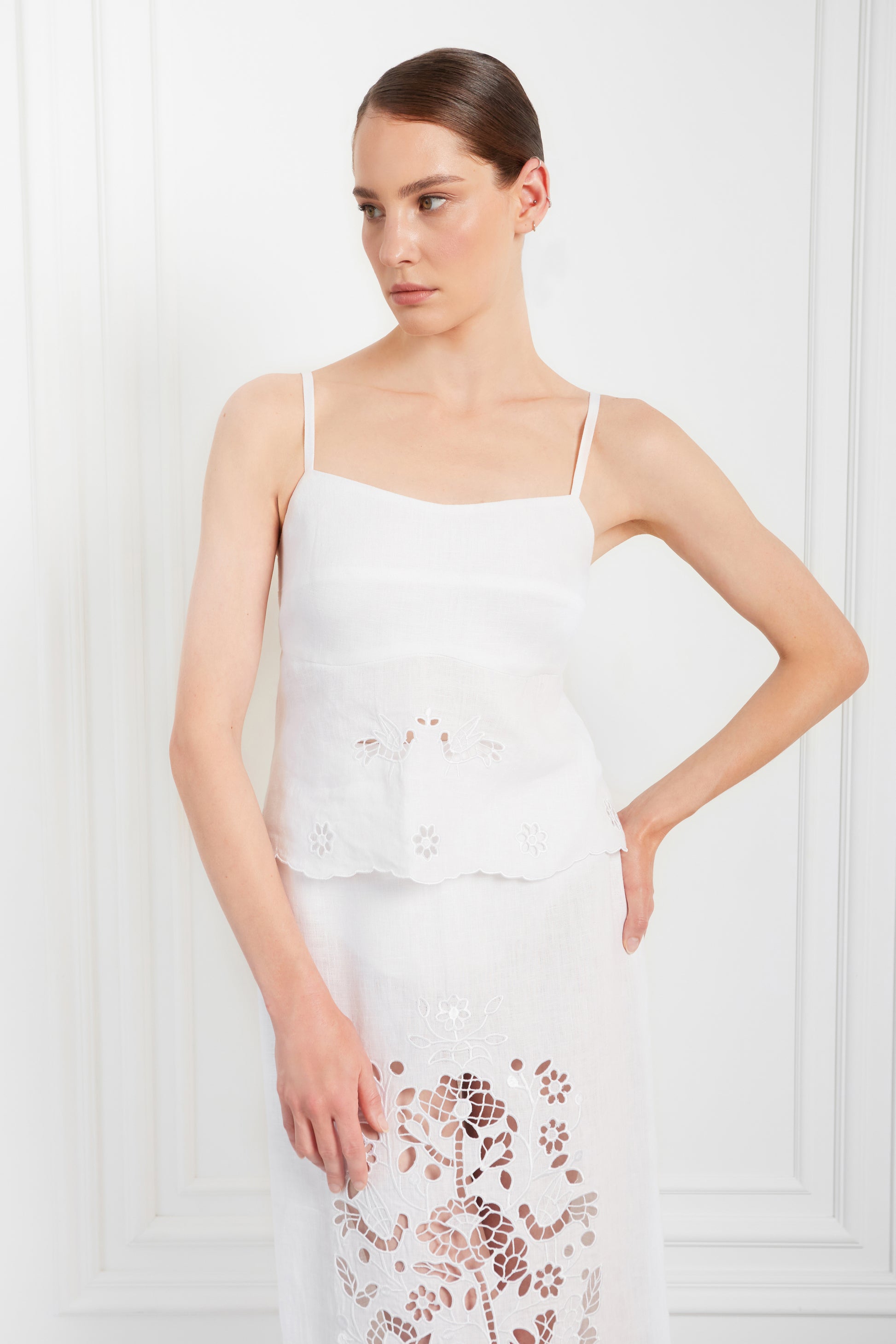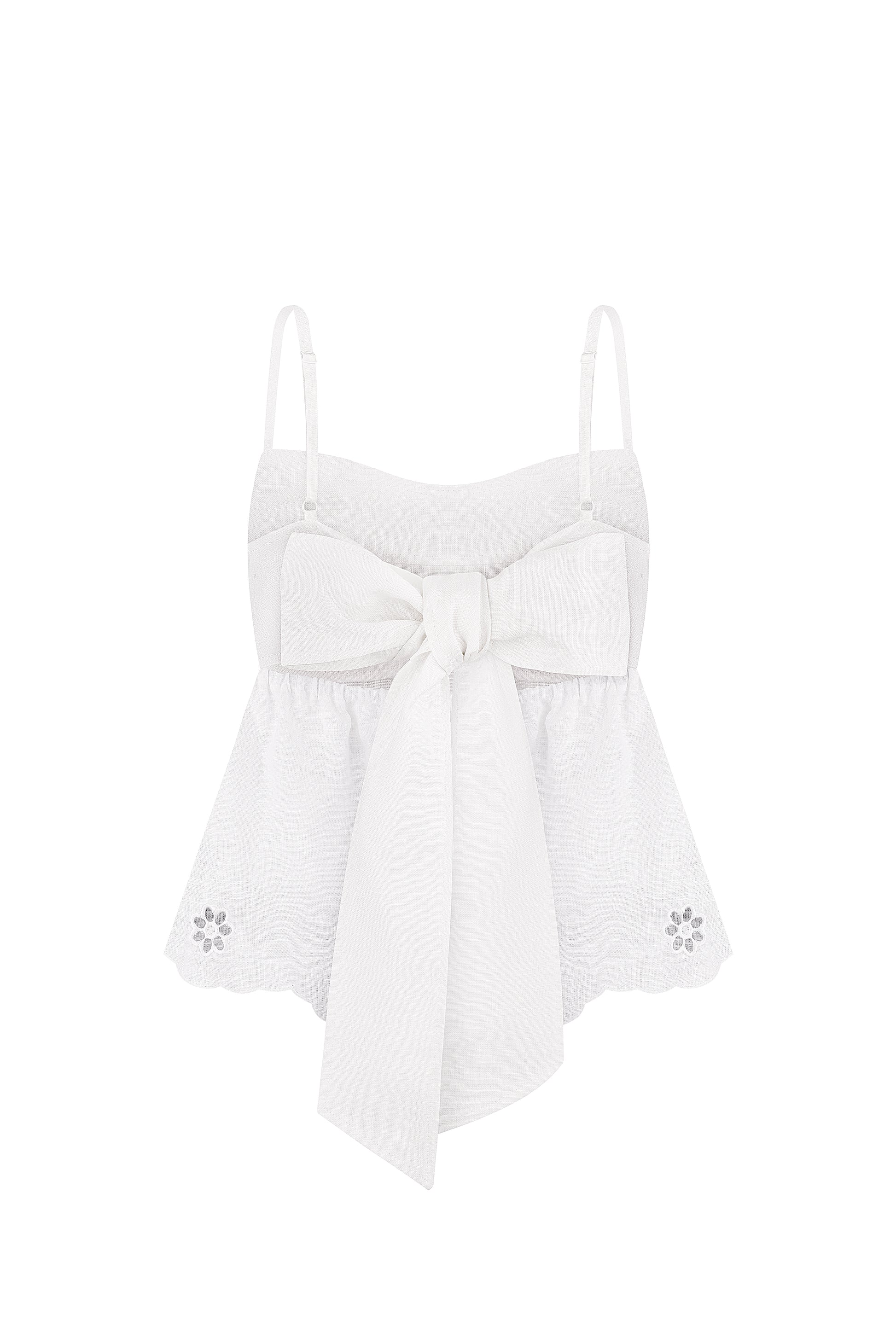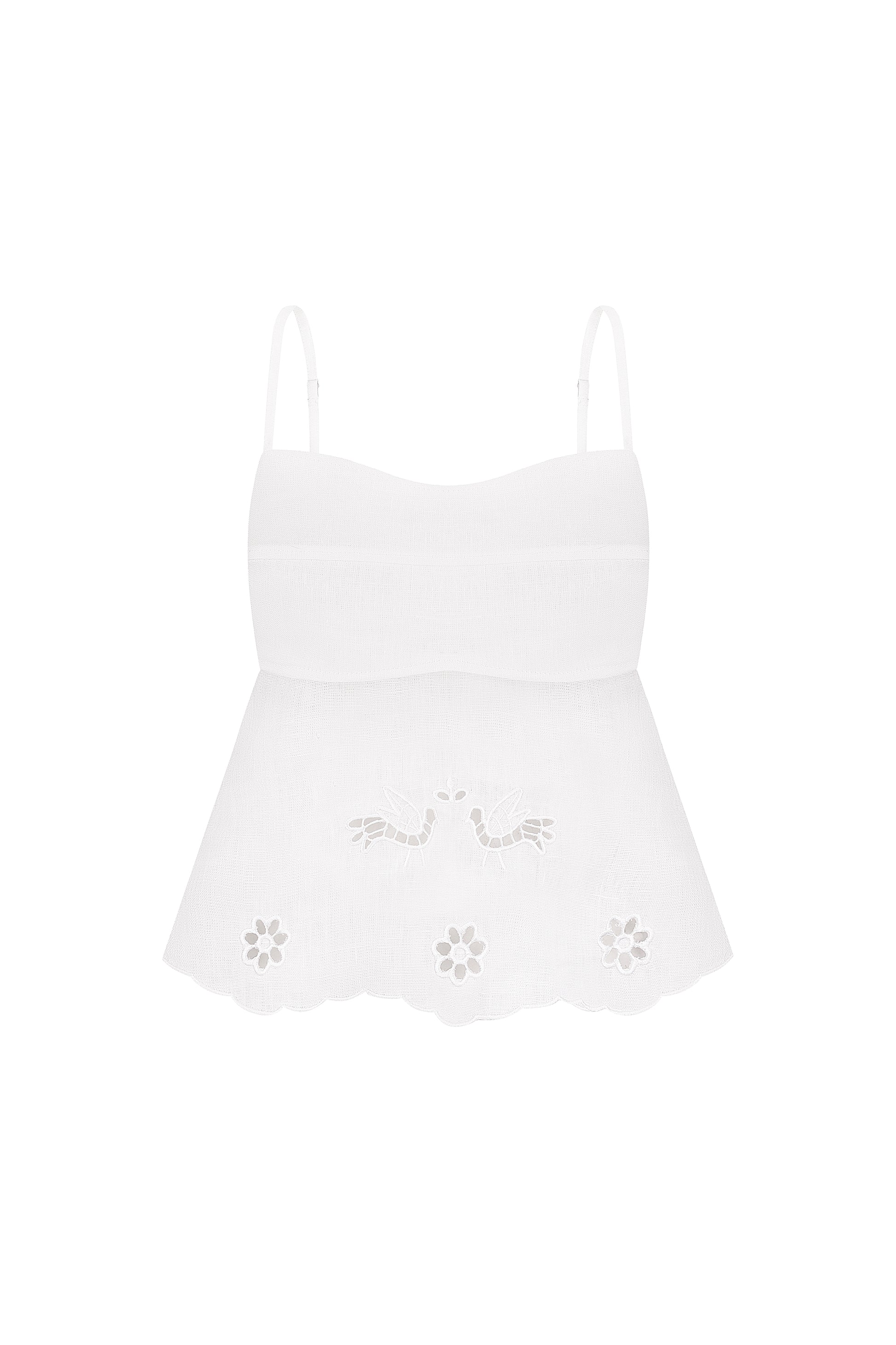 This elegant top is adorned with intricate embroidery crafted using the cutting technique, showcasing the exquisite artistry of the "Tree of Life" collection. Representing the infinite power of renewal, growth, and eternal life, the peace tree serves as a daily reminder of our ability to flourish and create. Designed to enhance your femininity, this top will add a touch of elegance and delicacy to your wardrobe.