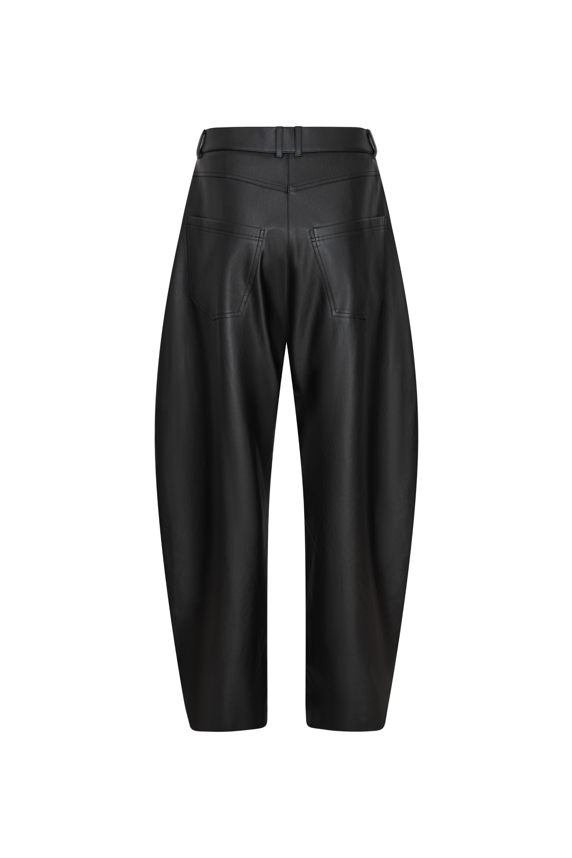 OVERSIZED FAUX LEATHER TROUSERS WITH FRONT AND BACK POCKETS. ZIP AND BUTTON CLOSURE. WAISTBAND WITH BELT LOOPS