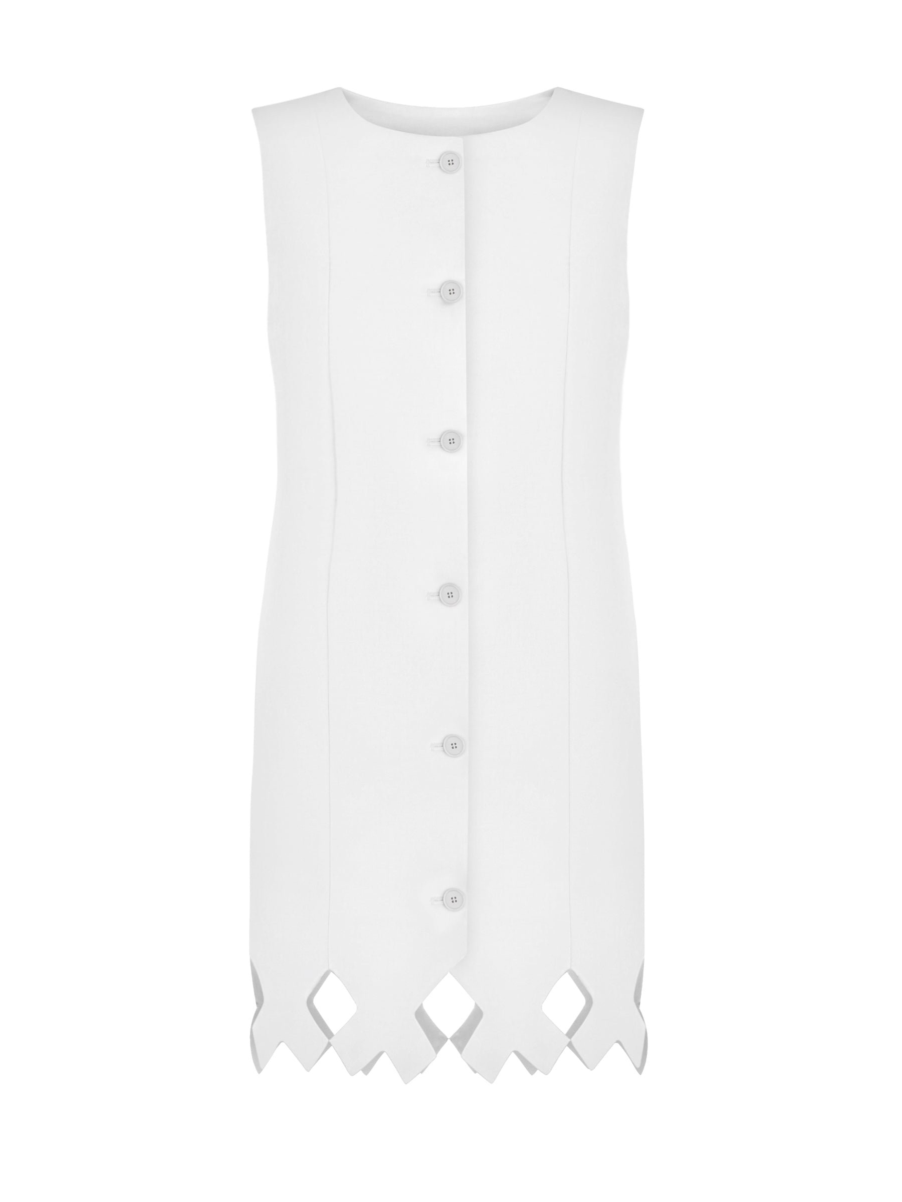 Mid-length semi-fitted vest in viscose with buttons and scalloped bottom