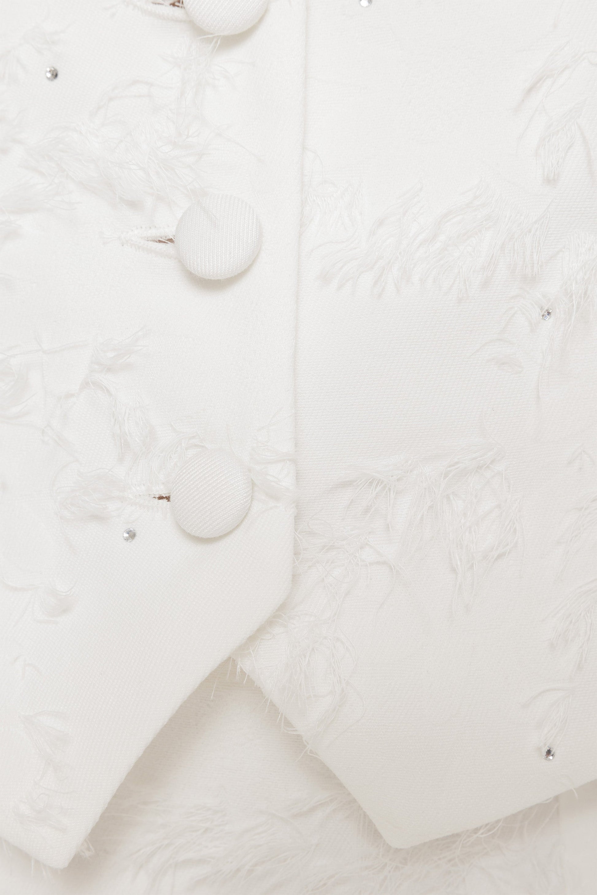 This tailored jacquard vest adds refined shine to any outfit with delicate crystal accents. A fresh twist on formalwear for day-to-night transitions or elevated layering.